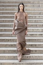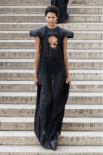 Ο Rick Owens παρουσίασε την SS26 συλλογή του στο Παρίσι με ένα ακόμη θεατρικό σκηνικό: τα μοντέλα του περπάτησαν μέσα σε νερό, τα μαύρα contact lenses που κάλυπταν ολόκληρα τα μάτια τους και οι μοναδικές δημιουργίες που φορούσαν, έδωσαν μια απόκοσμη διάσταση, κάνοντας τη στιγμή να μοιάζει από έναν άλλο πλανήτη.