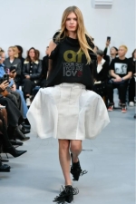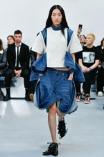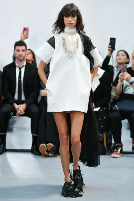 Η υβριδικότητα, χαρακτηριστικό της Sacai, κυριαρχούσε ξανά: ένα σακάκι γινόταν φόρεμα μέσα από λίγες αλλαγές στη δομή, ένα wide-leg τζιν ξεδιπλωνόταν σε cape, ενώ φόρμες τύπου sweatpants μετατρέπονταν σε ασύμμετρα φορέματα με όγκο και κίνηση. Η Abe μίλησε αργότερα για το μήνυμα της συλλογής, εξηγώντας ότι όταν πιστεύεις πραγματικά σε αυτό που κάνεις, πάντα υπάρχει μέλλον. Μια φράση που συμπύκνωνε την αυτοπεποίθηση αλλά και την ήρεμη αποφασιστικότητα της δουλειάς της.