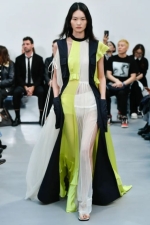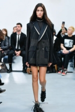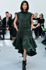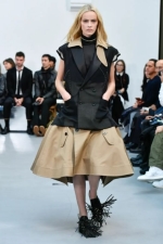 Η χρωματική παλέτα ήταν σχεδόν στρατιωτική και ουδέτερη: μαύρο, γήινα tones, δέρμα και τζιν, με το utilitarian στοιχείο να αναμιγνύεται με μια εκλεπτυσμένη, σχεδόν haute couture λεπτομέρεια. Το τελικό αποτέλεσμα ήταν έντονα σύγχρονο, με ισορροπία ανάμεσα στη δομή και την αποδόμηση, στην πειθαρχία και τον αυθορμητισμό. Η συλλογή έδωσε την αίσθηση ότι η Sacai κινείται σε ένα πεδίο όπου το ρούχο είναι ταυτόχρονα λειτουργικό, ποιητικό και βαθιά προσωπικό.