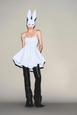 Η συλλογή παίζει με έντονες αντιθέσεις, δέρμα με taffeta, see-through πούλιες με oversized jackets, ballerina skirts με thigh-high boots. Τα looks είναι θεατρικά, το περιβάλλον καθημερινό, δημιουργώντας μια νέα δυναμική όπου το ντύσιμο γίνεται προσωπική απόλαυση και όχι κοινωνική υποχρέωση.