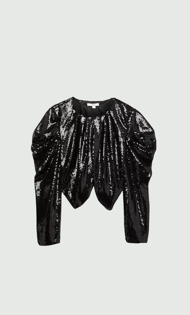 Το συγκεκριμένο μαύρο sequin top με puffed sleeves είναι το ιδανικό κομμάτι για τις γιορτινές εμφανίσεις της Πρωτοχρονιάς. Για ένα επίσημο look, συνδύασέ το με μια midi φούστα από σατέν ή δερμάτινη υφή, ψηλοτάκουνα πέδιλα και ένα clutch, προσθέτοντας διακριτικά κοσμήματα και sleek μαλλιά για glam αποτέλεσμα. Αν προτιμάς ένα casual outfit, φόρεσέ το με skinny ή straight τζιν, ankle boots και μίνιμαλ αξεσουάρ, κρατώντας το μακιγιάζ φυσικό. Με λίγη φαντασία, το συγκεκριμένο top μπορεί να μεταμορφωθεί εύκολα από party-ready σε καθημερινό, χωρίς να χάνει τη λάμψη του. BUY NOW
