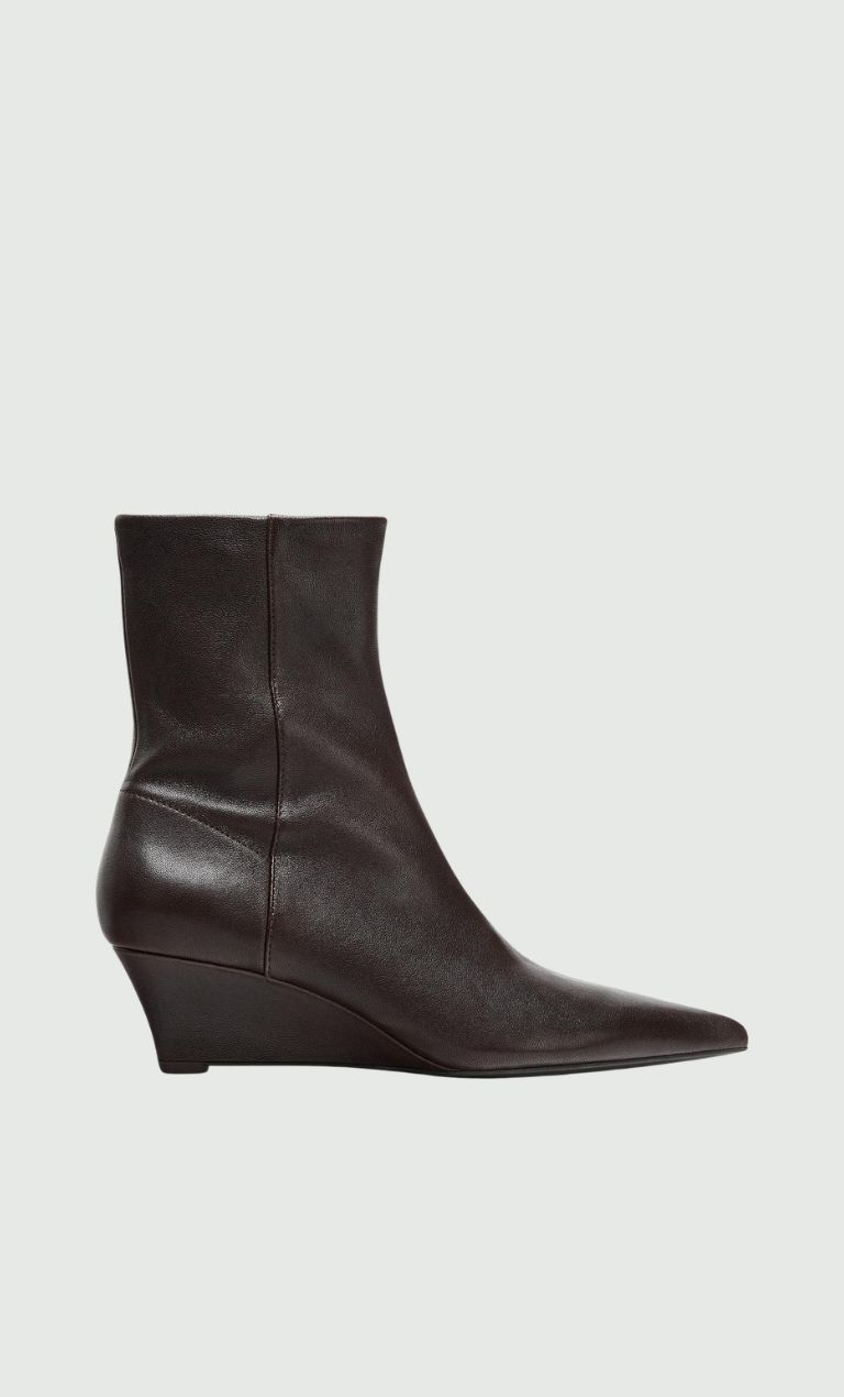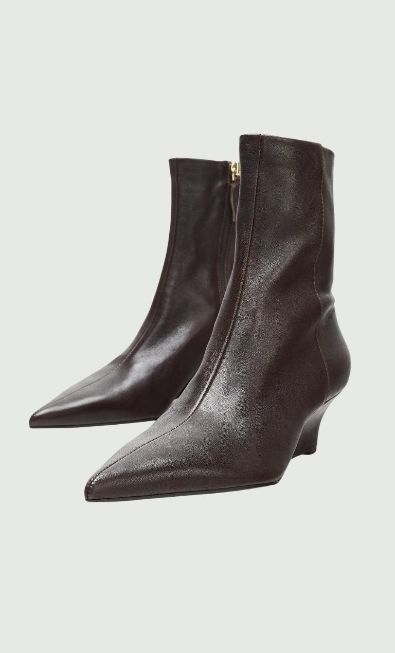 Αν υπάρχει ένα παπούτσι που μπορεί να αναβαθμίσει αβίαστα κάθε εμφάνιση της σεζόν, αυτό είναι το μποτάκι με wedge τακούνι. Το συγκεκριμένο σχέδιο σε βαθύ καφέ χρώμα συνδυάζει την κομψότητα με την άνεση, προσφέροντας μια σύγχρονη εκδοχή του power shoe που επιστρέφει δυναμικά στη μόδα. BUY NOW