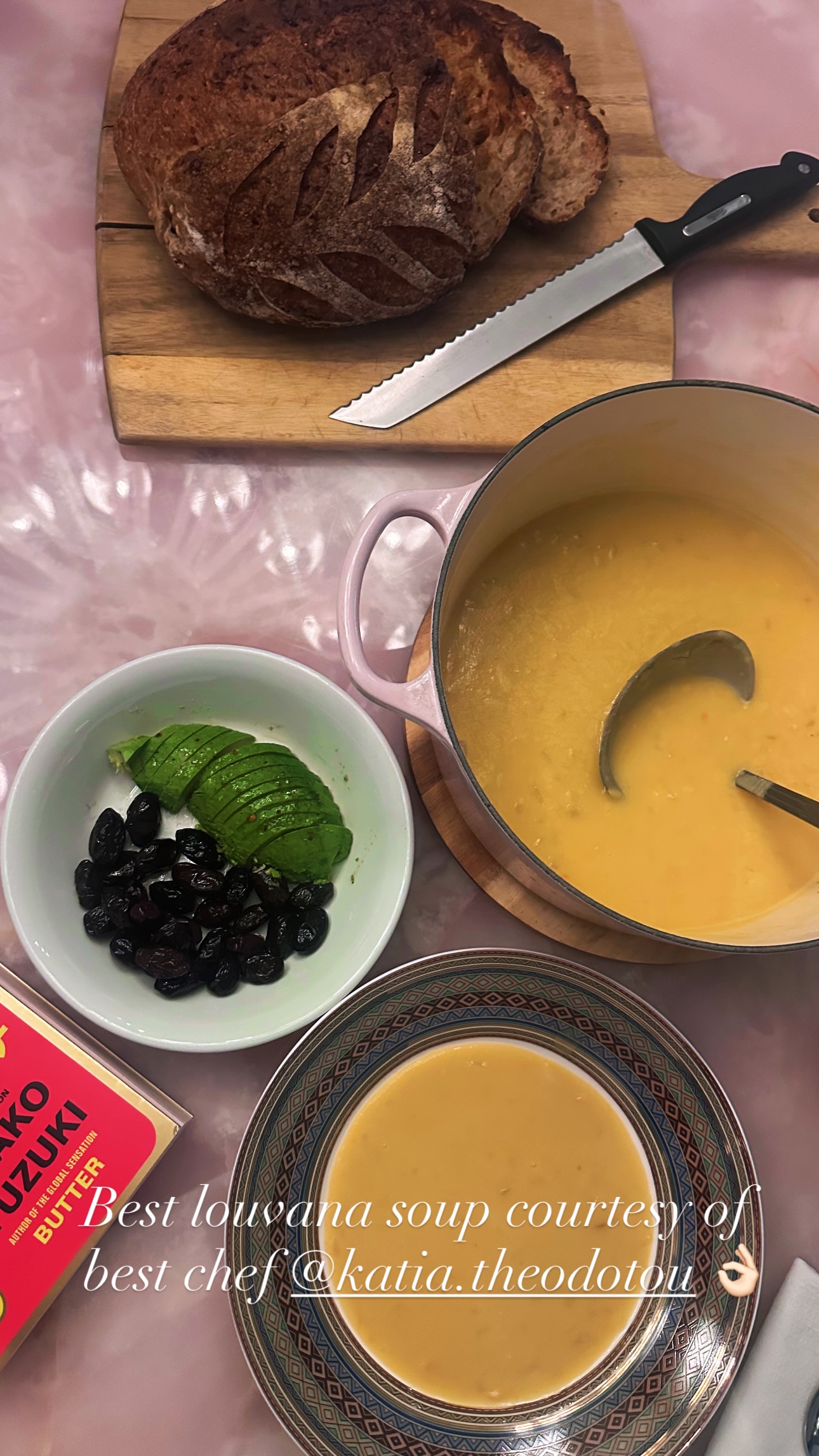 Ο λόγος για τη σούπα λουβάνα, την οποία, όπως φαίνεται, η Κάτια Θεοδότου φτιάχνει εξαιρετικά. Η επιβεβαίωση ήρθε μέσα από story της Έμιλυ Γιολίτη, η οποία δεν δίστασε να γράψει: «Η καλύτερη σούπα λουβάνα από την καλύτερη σεφ, Κάτια Θεοδότου». Στο στιγμιότυπο βλέπουμε την κατσαρόλα, το πιάτο αλλά και το τραπέζι, ένα σκηνικό που φωνάζει «κυπριακή φιλοξενία».