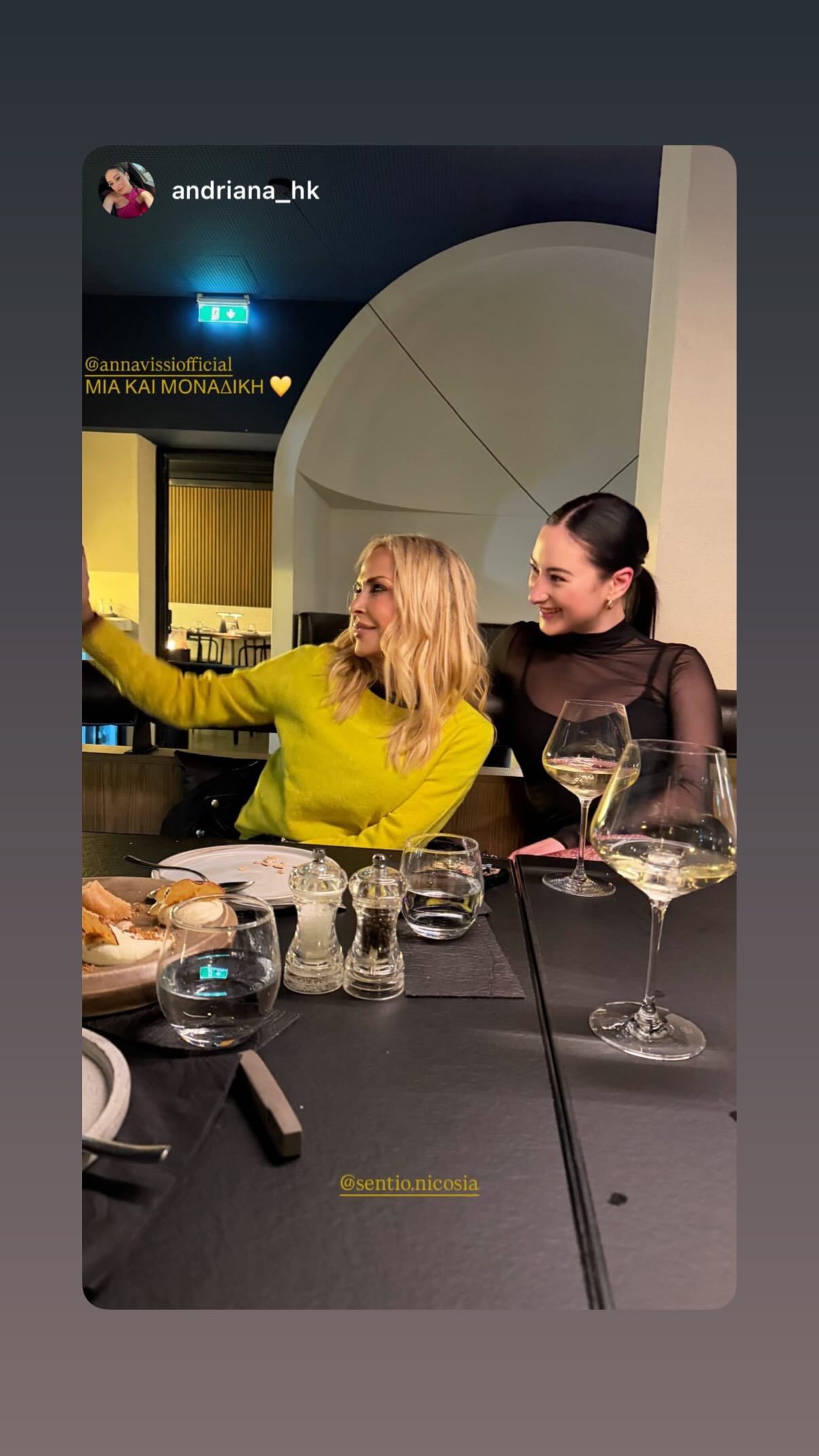 Ολιγοήμερη απόδραση στην Κύπρο πραγματοποίησε η Άννα Βίσση, με τη Λευκωσία να έχει την τιμητική της. Το βράδυ της Δευτέρας 19 Ιανουαρίου, η απόλυτη Ελληνίδα σταρ εντοπίστηκε να δειπνεί σε γνωστό και ιδιαίτερα αγαπημένο εστιατόριο της πρωτεύουσας, προκαλώντας ενθουσιασμό στους θαμώνες.