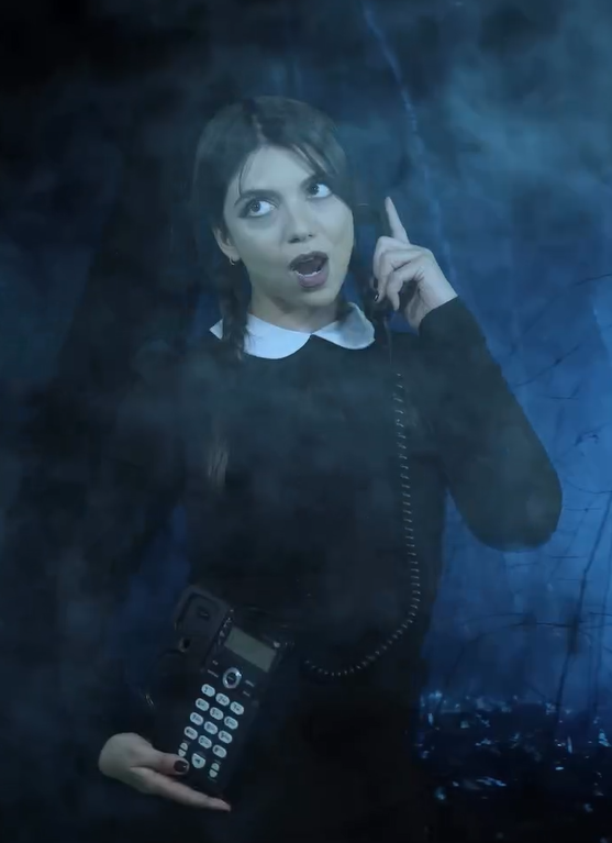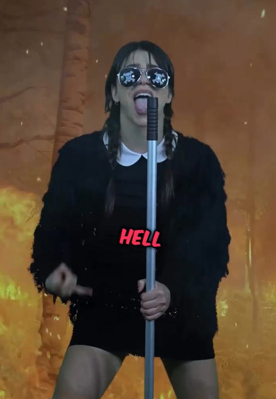 Το Halloween τους βρήκε πιο… σκοτεινούς και δημιουργικούς από ποτέ. Η Ελεωνόρα La Luna και ο Ηλίας, έστησαν μια θεατρική, spooky και άκρως ροκ μουσική βραδιά, γεμάτη iconic τραγούδια και εντυπωσιακά looks που μας μετέφεραν απευθείας σε κινηματογραφική σκηνή τρόμου. Το performance ξεκίνησε με το «Somebody’s Watching Me» του Rockwell, με την Ελεωνόρα ντυμένη ως Wednesday Addams, μαύρο φόρεμα, κοτσίδες και βλέμμα… απόκοσμο.