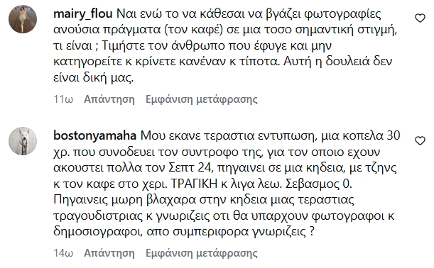 Σε μια περίσταση όπως μια κηδεία και ειδικά μιας τόσο εμβληματικής προσωπικότητας, πολλοί θεώρησαν ότι η συγκεκριμένη εικόνα δεν συνάδει με το ύφος και τον σεβασμό της στιγμής. Τα σχόλια στα social media κινήθηκαν σε δύο βασικά «στρατόπεδα», εκείνοι που μίλησαν για έλλειψη σεβασμού, ακατάλληλη εμφάνιση (καφές, τζιν) και «λάθος μήνυμα» σε μια τόσο φορτισμένη ημέρα.