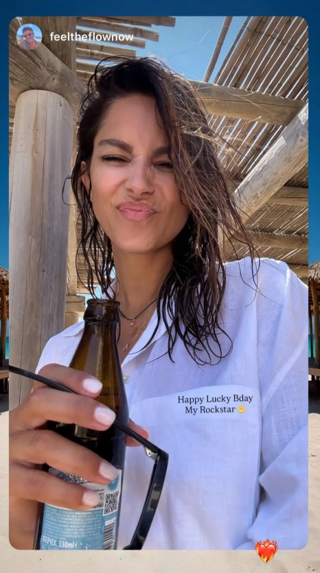 Ο σύντροφός της, Φίλιππος Μιχόπουλος, θέλησε να της ευχηθεί δημόσια με έναν τρυφερό και ιδιαίτερα ρομαντικό τρόπο. Δημοσιεύοντας μια καλοκαιρινή φωτογραφία της από τις διακοπές τους, όπου η ίδια ποζάρει με wet hair look, λευκό πουκάμισο και μια μπύρα στο χέρι, της αφιέρωσε το μήνυμα: «Happy lucky bday my rockstar» Μια λιτή φράση, γεμάτη συναίσθημα, που αποτυπώνει τη δυνατή σχέση που τους ενώνει.