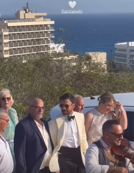 Λίγο πριν ξεκινήσει το μυστήριο, οι δυο τους αντάλλαξαν ένα τρυφερό φιλί στα σκαλιά της εκκλησίας, κερδίζοντας το θερμό χειροκρότημα των καλεσμένων. Η στιγμή αυτή ήταν γεμάτη συναισθήματα, καθώς το ζευγάρι γιόρταζε την πιο σημαντική ημέρα της ζωής του, περιτριγυρισμένο από αγαπημένα πρόσωπα.