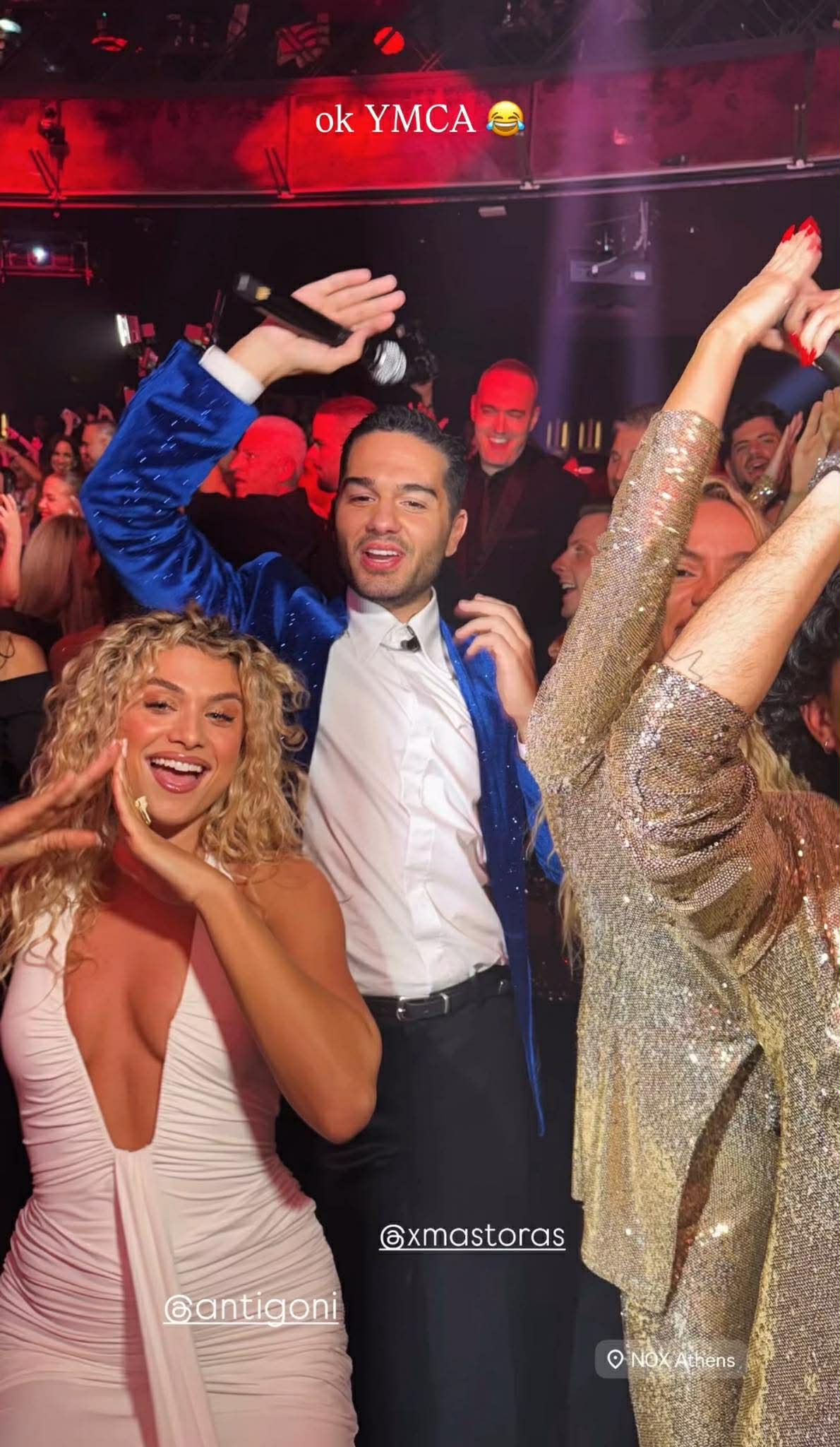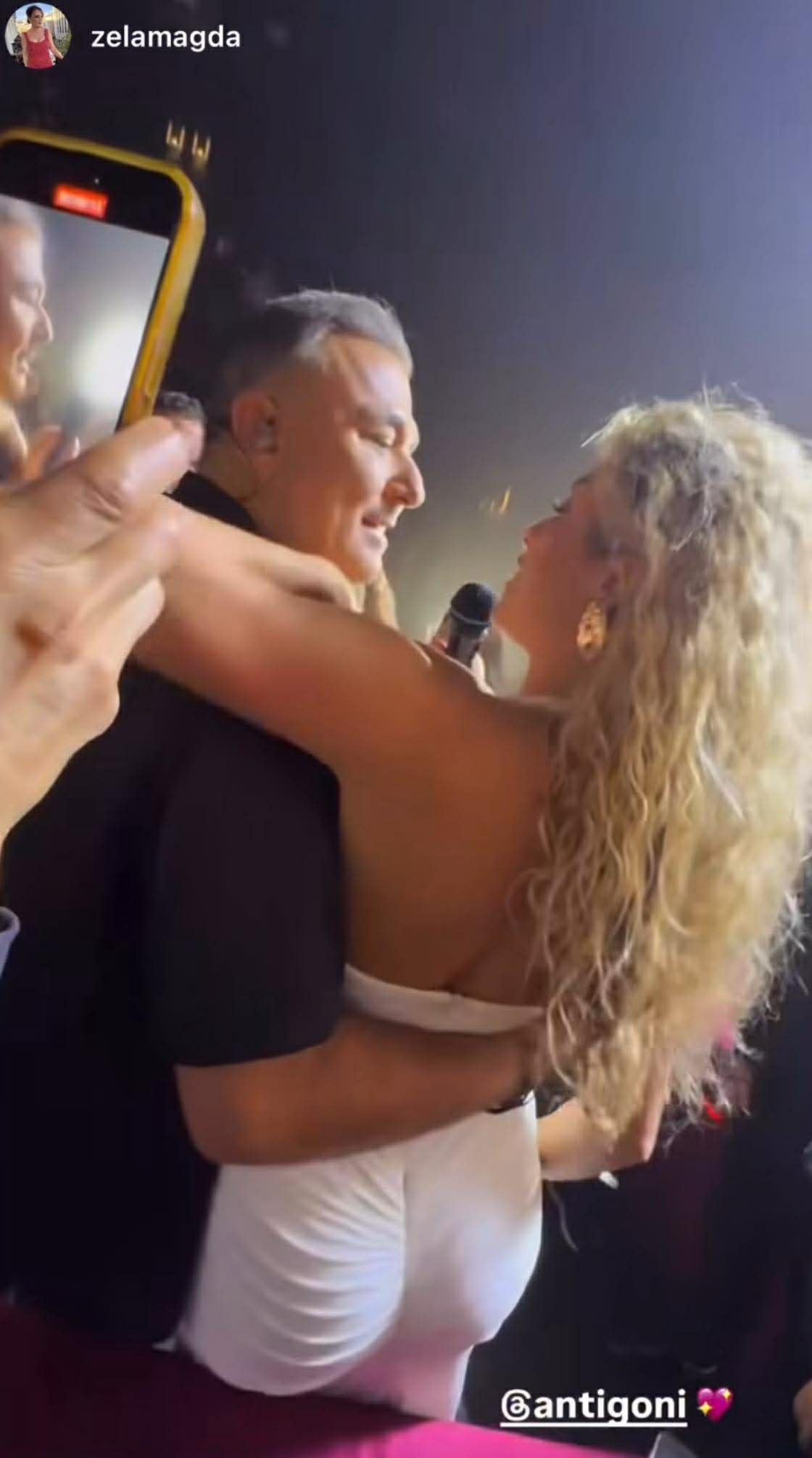Καθισμένη στα πρώτα τραπέζια μαζί με γνωστές Κύπριες σοσιαλιτέ, η Antigoni τράβηξε γρήγορα τα βλέμματα των καλλιτεχνών. Και κάπου εκεί η βραδιά απογειώθηκε, Ρέμος και Χρήστος Μάστορας την αναγνώρισαν, της έδωσαν το μικρόφωνο και τραγούδησαν μαζί της, χαρίζοντάς της μία από τις πιο ενθουσιώδεις αποθεώσεις της σεζόν.