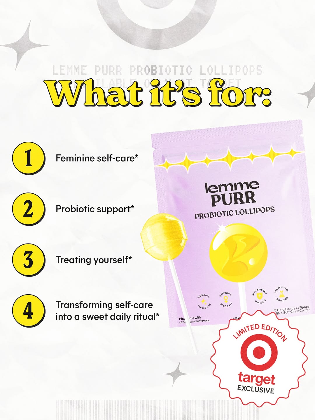 Η επιχειρηματίας και σταρ του ριάλιτι The Kardashians παρουσίασε τη νέα σειρά γλειφιτζουριών Lemme Purr, τα οποία διατίθενται σε πακέτα αξίας 5,99 δολαρίων, αποκλειστικά στα καταστήματα Target. Παρόμοια με τα Lemme Purr supplement gummies, που συμβάλλουν στη διατήρηση της κολπικής υγείας και της σωστής ισορροπίας του pH, η νέα εκδοχή σε μορφή γλειφιτζουριού περιέχει το προβιοτικό βακτήριο Bacillus coagulans. Πρόκειται για ένα πεπτικό βοήθημα που συμβάλλει στη βελτίωση συμπτωμάτων όπως το φούσκωμα, το σύνδρομο ευερέθιστου εντέρου (IBS) και η διάρροια.