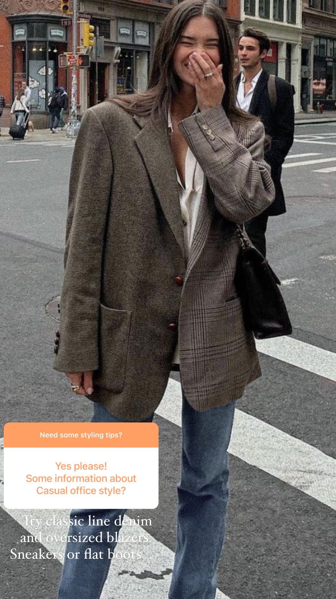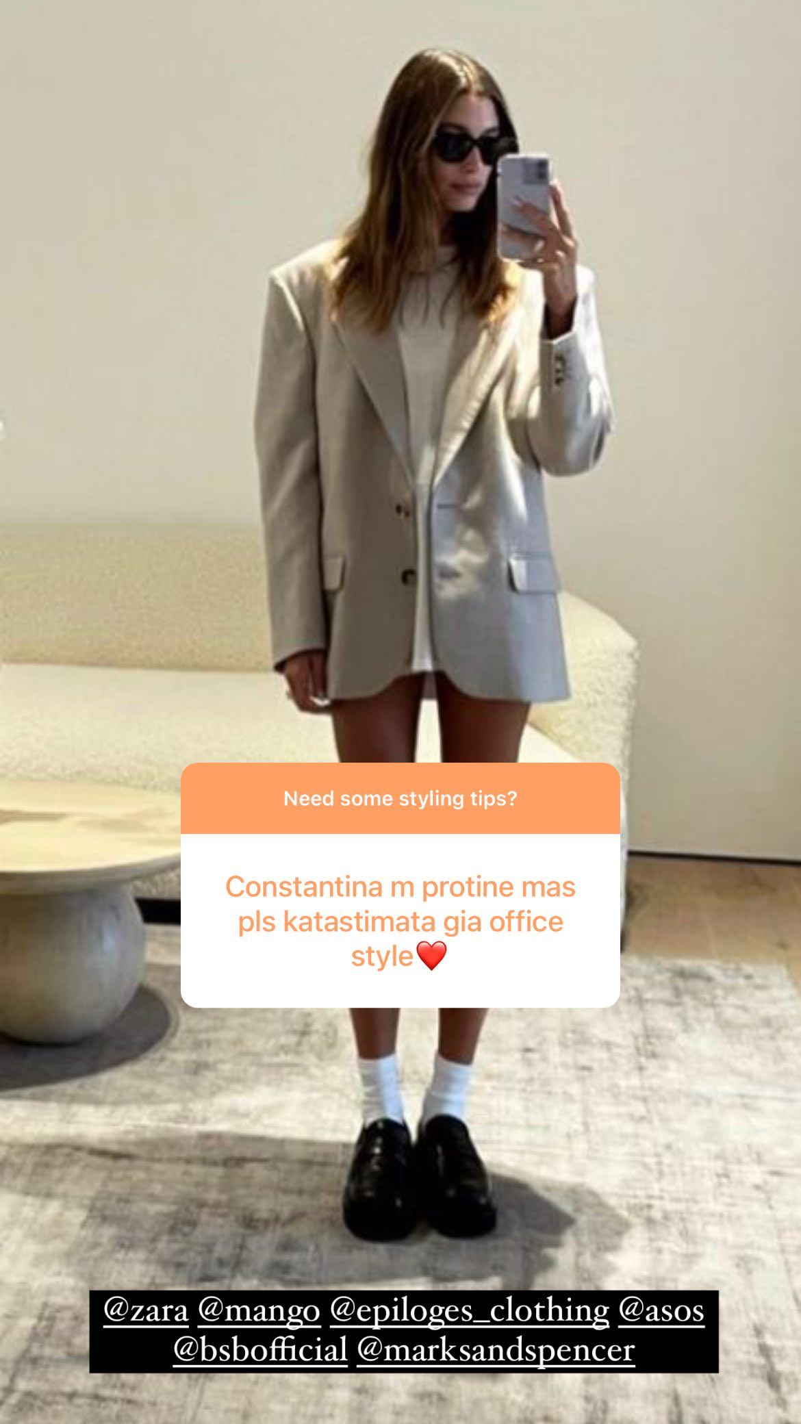 Μέσα σε πολλά outfits που κοινοποίησε βλέπουμε ότι μια τάση που σίγουρα θα ακολουθήσει και η ίδια θα είναι τα oversized blazers κάνοντας τα ρούχα του γραφείο λίγο πιο άνετα και καθημερινά.