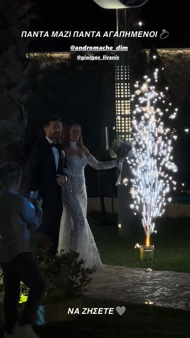 Σε ένα ειδυλλιακό σκηνικό στο κτήμα Anais στους Θρακομακεδόνες, ο Γιώργος Λιβάνης και η Ανδρομάχη ένωσαν τις ζωές τους με τα ιερά δεσμά του γάμου και αμέσως μετά βάφτισαν τον γιο τους, σε μια μοναδική διπλή τελετή με περίπου 600 καλεσμένους. Ο μικρός πήρε το όνομα Γεράσιμος, προς τιμήν του πατέρα του τραγουδιστή, με νονούς τη Σοφία Μπακλαβά και τον Γιάννη Βασιλειάδη. Κουμπάροι του ζευγαριού ήταν η Μικαέλα Ιωνά και ο Παναγιώτης Γλεντζής.
