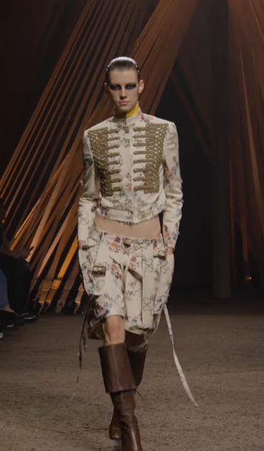 Από την άλλη, ο Jonathan Anderson, στο ντεμπούτο του για την ανδρική συλλογή του οίκου Dior, προσέγγισε το military jacket μέσα από μια πιο παιχνιδιάρικη και σύγχρονη ματιά. Συνδύασε ιστορικές αναφορές με μοντέρνα εκκεντρικότητα, δημιουργώντας έναν διάλογο ανάμεσα στο παρελθόν και το παρόν της μόδας. Η πρότασή του ανέδειξε τη δυναμική ευελιξία του trend, αποδεικνύοντας πως το στρατιωτικό σακάκι μπορεί να μεταμορφώνεται συνεχώς χωρίς να χάνει την αυθεντικότητά του.