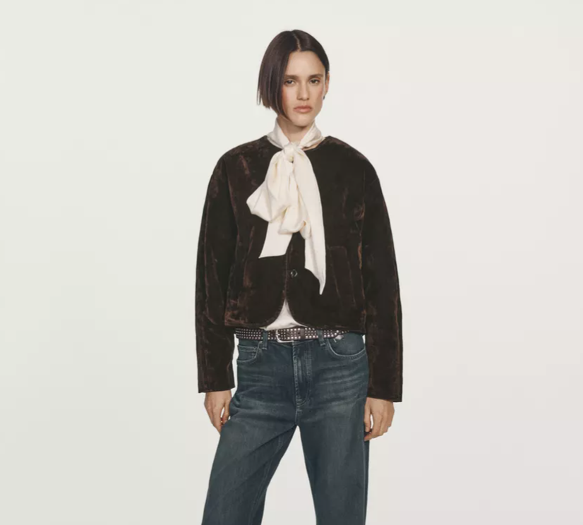 Short denim jacket with flocked finish από Massimo Dutti BUY NOW