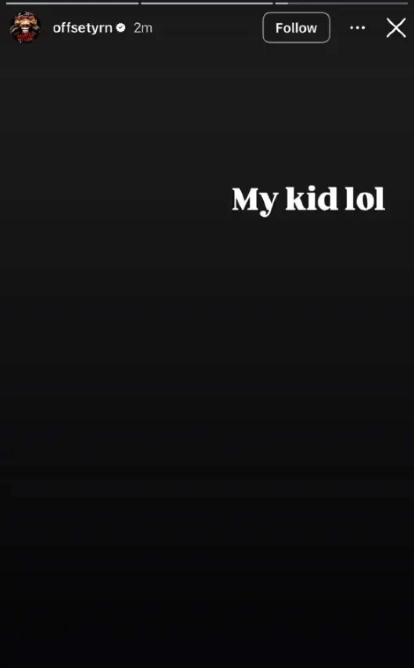 Σε screenshots που κυκλοφόρησαν στα social media, ο Offset φέρεται να έγραψε σε Instagram Story: «Το παιδί μου». Η ανάρτηση διέγραψε λίγη ώρα αργότερα, όμως είχε ήδη προκαλέσει σάλο.