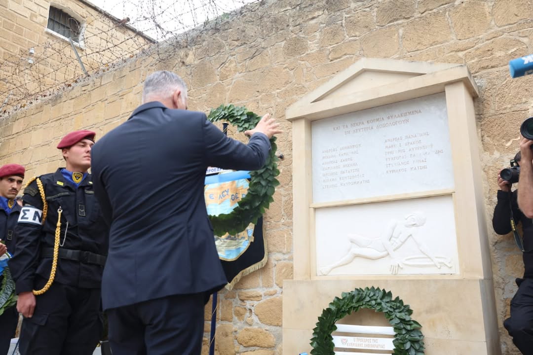 Μέσα σε αυτό το πλαίσιο, ο Απελευθερωτικός Αγώνας της ΕΟΚΑ είναι για όλους εμάς πηγή διδαγμάτων και προτύπων, ώστε να μπορέσουμε να φανούμε αντάξιοι εκείνων που ταπείνωσαν τους δήμιους τους και οδηγήθηκαν στην αγχόνη τραγουδώντας.