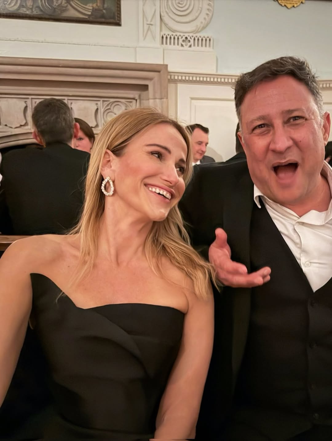 Για την περίσταση, η Έμιλυ Γιολίτη απέδειξε για ακόμη μια φορά το στιλιστικό της ένστικτο, επιλέγοντας δύο διαφορετικά looks. Σε ένα από αυτά, τη βλέπουμε με ένα κομψό λευκό blazer συνδυασμένο με μαύρο tailored παντελόνι, μια εμφάνιση chic και διαχρονική. Αργότερα, στο επίσημο δείπνο με dress code black tie, εντυπωσίασε με ένα υπέροχο μαύρο φόρεμα, απόλυτα εναρμονισμένο με τη βραδινή ατμόσφαιρα και το ύφος της εκδήλωσης.