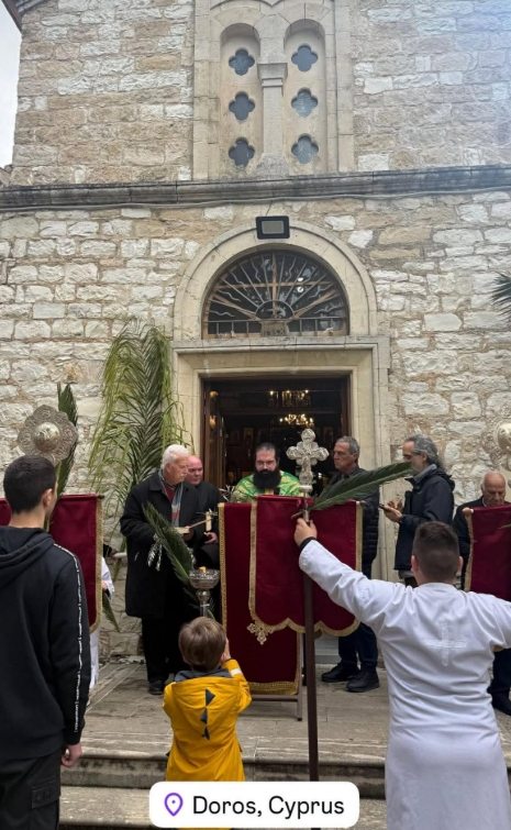 Η Πρώτη Κυρία πέρασε την Κυριακή των Βαΐων στο χωριό Δωρός της Λεμεσού, τον τόπο καταγωγής του πατέρα της. Ένα χωριό χτισμένο σε υψόμετρο, ανάμεσα σε βουνά και πράσινο, που διατηρεί ακόμα εκείνη τη γνήσια κυπριακή ατμόσφαιρα. Ο Δωρός, μόλις 25 χιλιόμετρα από τη Λεμεσό, αποτελεί έναν μικρό «κόσμο» ηρεμίας και παράδοσης και αυτό ακριβώς αποτυπώθηκε και στις εικόνες.