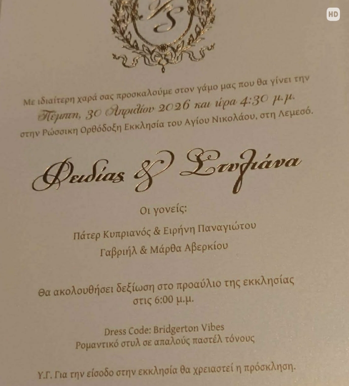 Πάμε όμως στο juicy κομμάτι, το concept. Η πρόσκληση μιλά ξεκάθαρα για «γάμο αλά Bridgerton», δηλαδή, παστέλ αποχρώσεις (ροζ, γαλάζιο, butter yellow, ναι, όλα μαζί), λουλούδια παντού (και όταν λέμε παντού, εννοούμε υπερπαραγωγή), ρομαντισμός εποχής Αντιβασιλείας και αισθητική που θα κάνει το Instagram να πάρει φωτιά, και ας είμαστε ειλικρινείς… αυτό είναι 100% επιλογή της Στυλιάνας, ο Φειδίας εδώ έχει μάλλον… guest appearance.