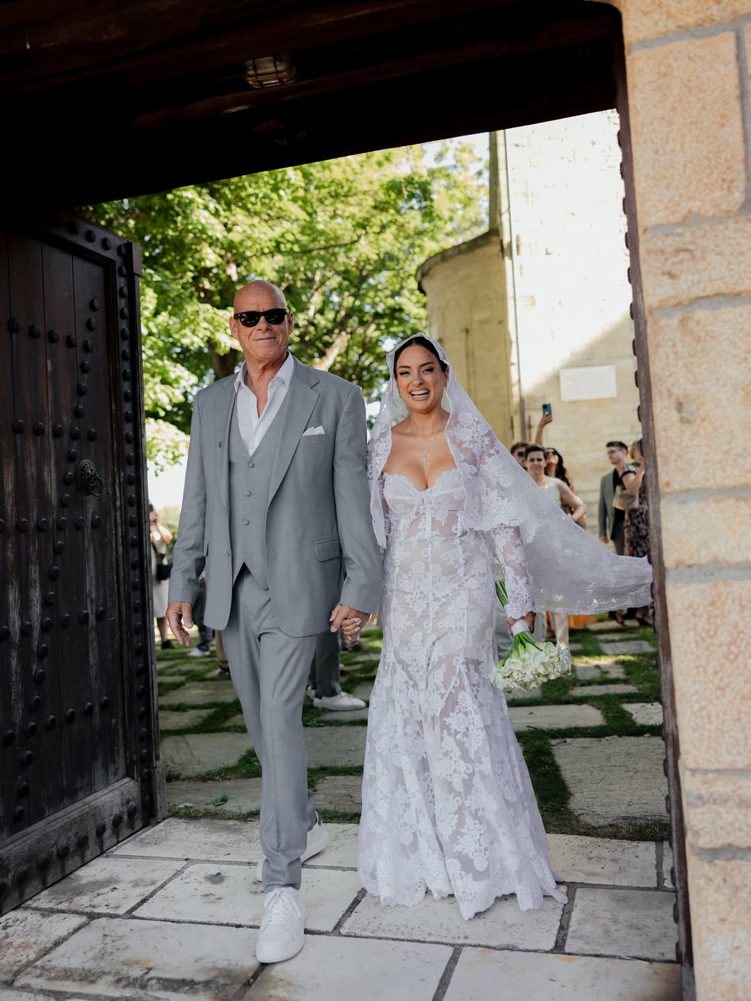 Η 45χρονη παρουσιάστρια εμφανίστηκε συγκλονιστική μέσα στο κομψό της νυφικό, αποπνέοντας φινέτσα και ρομαντισμό. Δίπλα της, ο αγαπημένος της σκύλος ένα ιδιαίτερα συγκινητικό στιγμιότυπο που τράβηξε τα βλέμματα όλων. Ο Τζώνη Καλημέρης, πάντα επικοινωνιακός και κομψός, υποδέχθηκε την εκλεκτή της καρδιάς του με ένα μπουκέτο λουλούδια.