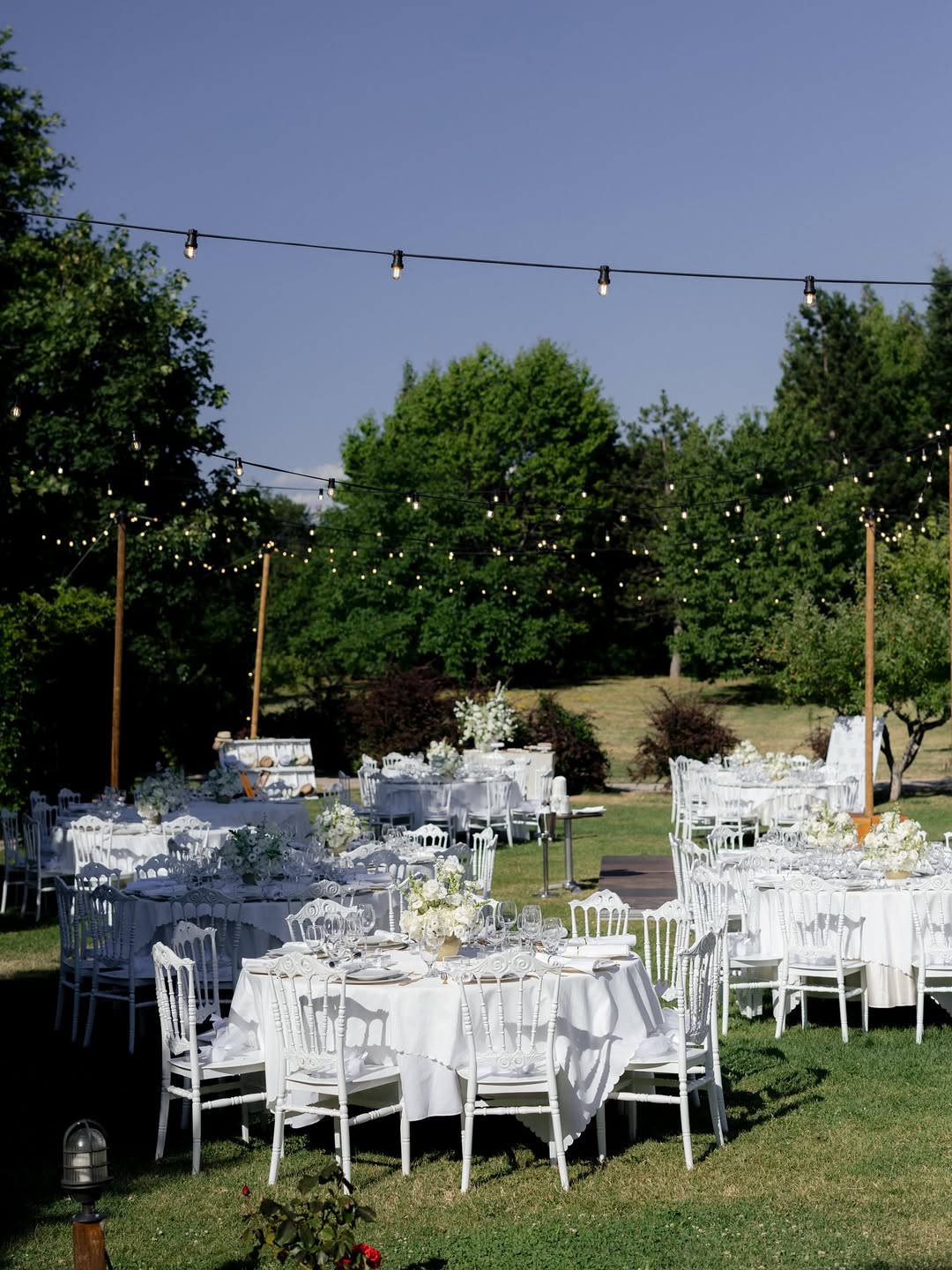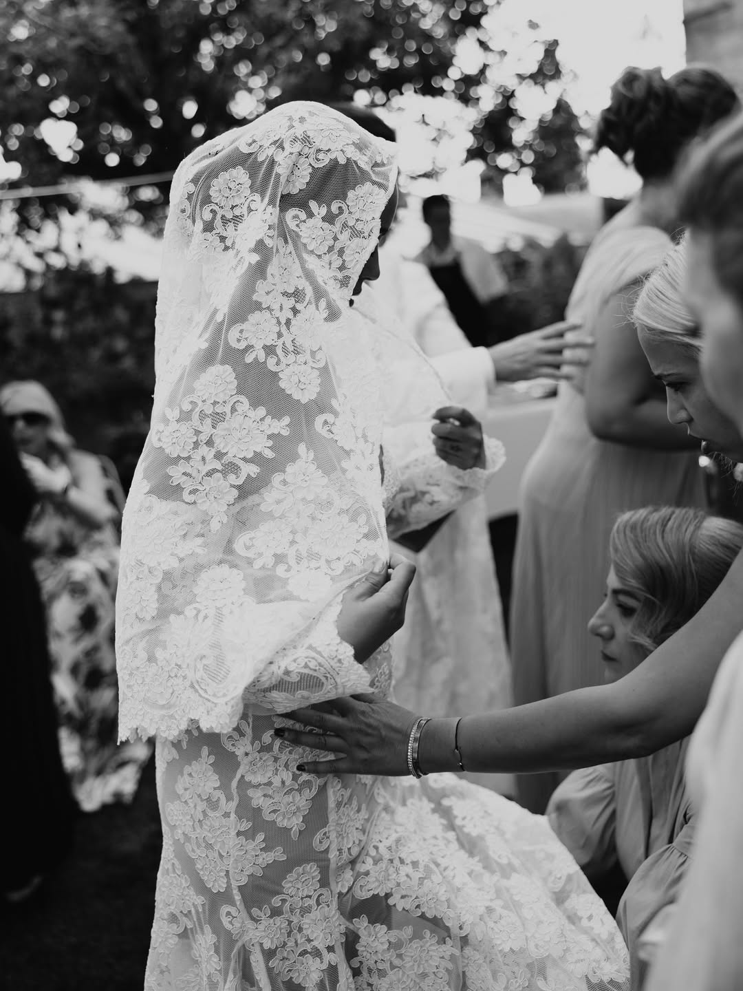 Αντί για τα κλασικά στέφανα, οι δυο τους επέλεξαν κορώνες, προσδίδοντας μια παραμυθένια, σχεδόν βασιλική πινελιά στο μυστήριο. Το σκηνικό, τοποθετημένο μέσα στη φύση του Νυμφαίου, ανέδειξε το ρομαντικό ύφος του γάμου, ενώ οι φωτογραφίες που κυκλοφόρησαν πρόσφατα αποπνέουν συγκίνηση.