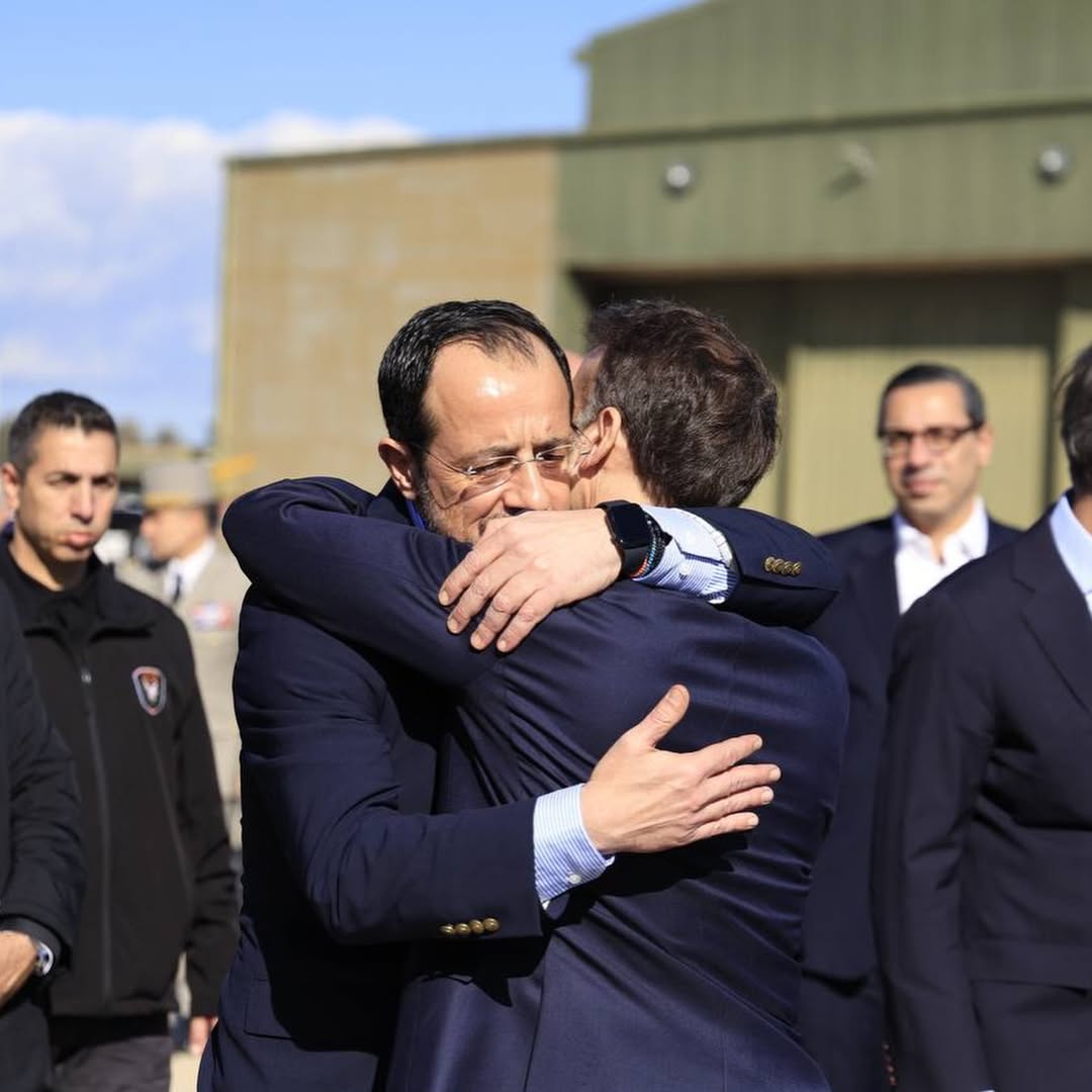 Οι τρεις ηγέτες αντάλλαξαν θερμές αγκαλιές, χαμόγελα και φιλικά χτυπήματα στην πλάτη, σε στιγμές που θύμιζαν περισσότερο παλιά παρέα που συναντιέται μετά από καιρό παρά αυστηρό διπλωματικό πρωτόκολλο. Ο Νίκος Χριστοδουλίδης αγκάλιασε εγκάρδια τόσο τον Macron όσο και τον Κυριάκο Μητσοτάκη, με τις φωτογραφίες να αποτυπώνουν μια ιδιαίτερα κοντινή και φιλική σχέση μεταξύ των τριών.