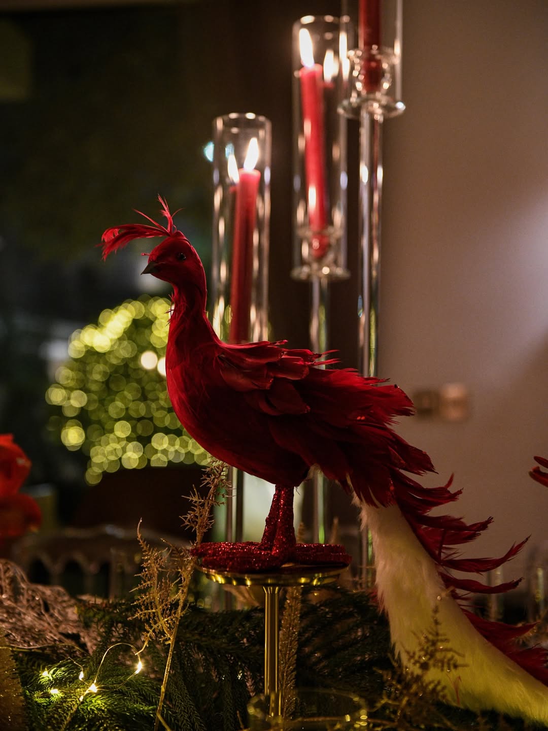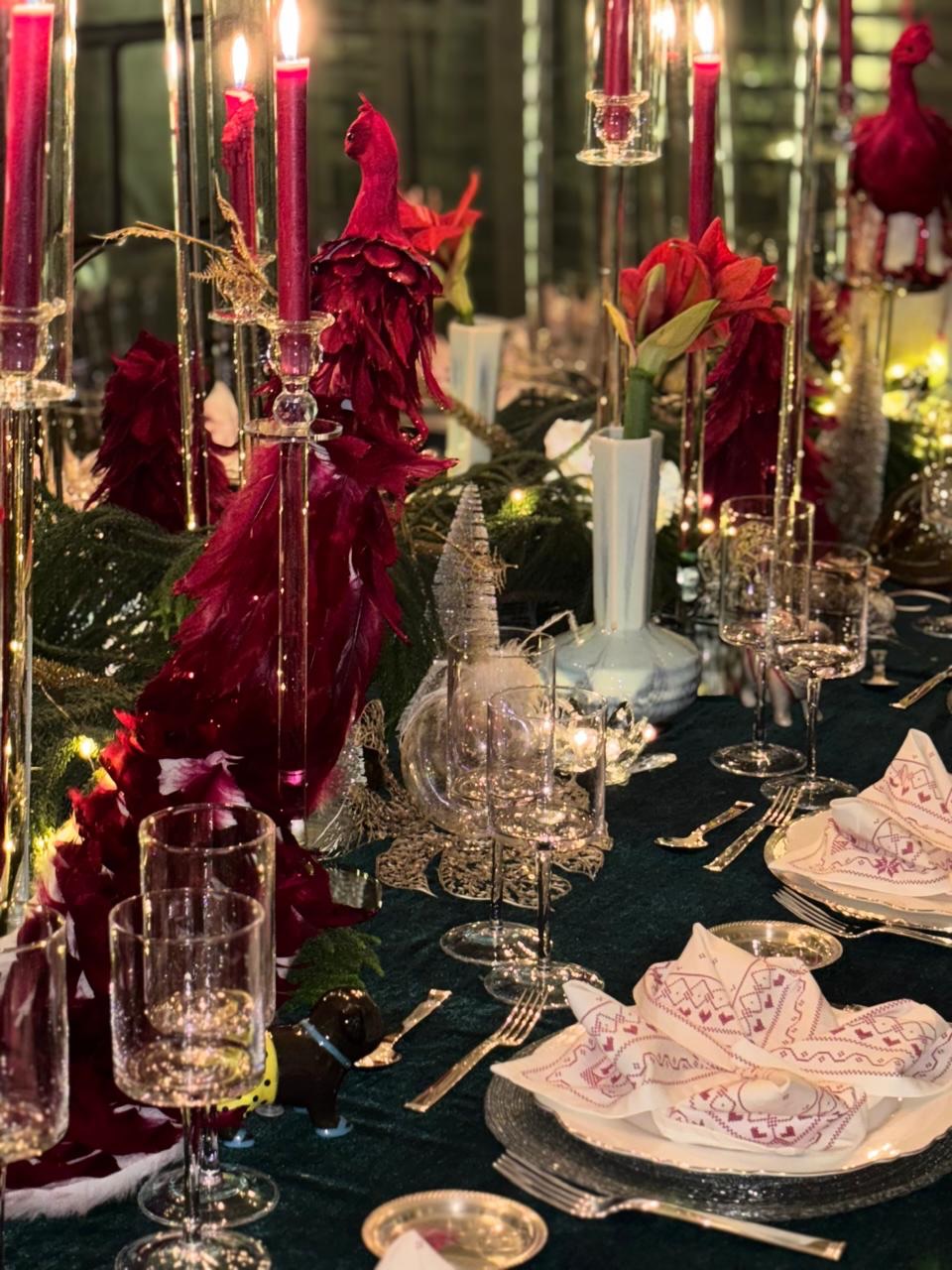 Η Ραμόνα Φίλιπ δεν σταματά ποτέ να μας εντυπωσιάζει, είτε με το αψεγάδιαστο στυλ της είτε με τη διαχρονική της φινέτσα. Αυτές τις γιορτές, άνοιξε το σπίτι της για ένα υπέροχο χριστουγεννιάτικο δείπνο, με το τραπέζι της να κλέβει, όπως ήταν αναμενόμενο, τις εντυπώσεις. Η χρωματική παλέτα κινήθηκε σε βαθύ κόκκινο, συνδυασμένο αρμονικά με χρυσές λεπτομέρειες, δημιουργώντας μια ατμόσφαιρα ζεστή αλλά και πολυτελή. Μικρά χριστουγεννιάτικα δέντρα, εντυπωσιακά κόκκινα πουλιά με φτερά και κομψά κρυστάλλινα κηροπήγια με κόκκινα κεριά συνέθεταν ένα σκηνικό που απέπνεε γιορτινή μαγεία και προσεγμένη αισθητική.