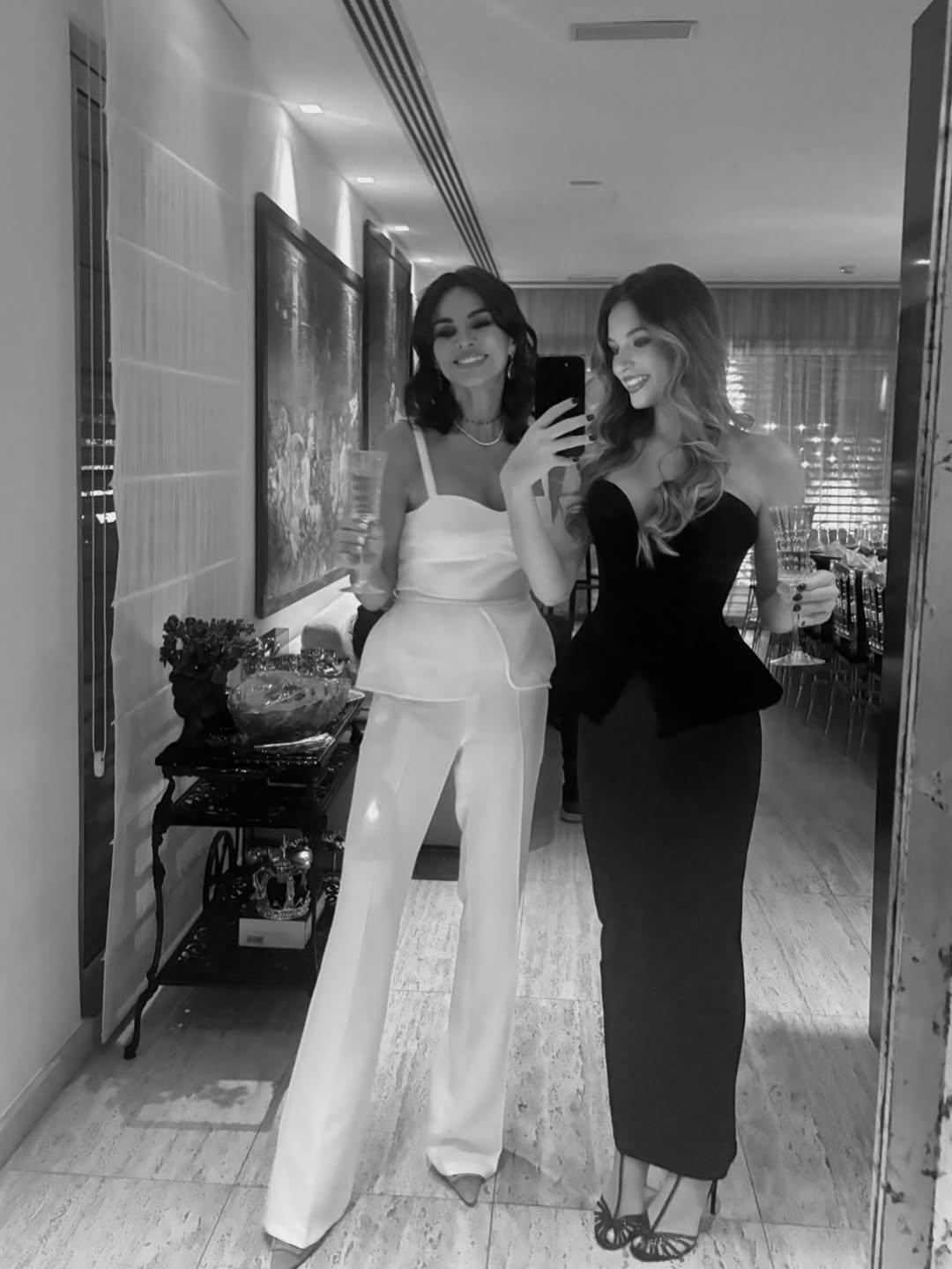 Σε στιγμιότυπα που μοιράστηκε, είδαμε τη Ραμόνα να ποζάρει με ένα κομψό total white outfit, αποτελούμενο από tailored παντελόνι και minimal μπλουζάκι, εκπέμποντας διακριτική πολυτέλεια. Η κόρη της επέλεξε μαύρες αποχρώσεις, φορώντας μια μαύρη φούστα και ένα βελούδινο μαύρο strapless top, ολοκληρώνοντας ένα chic και εορταστικό look.