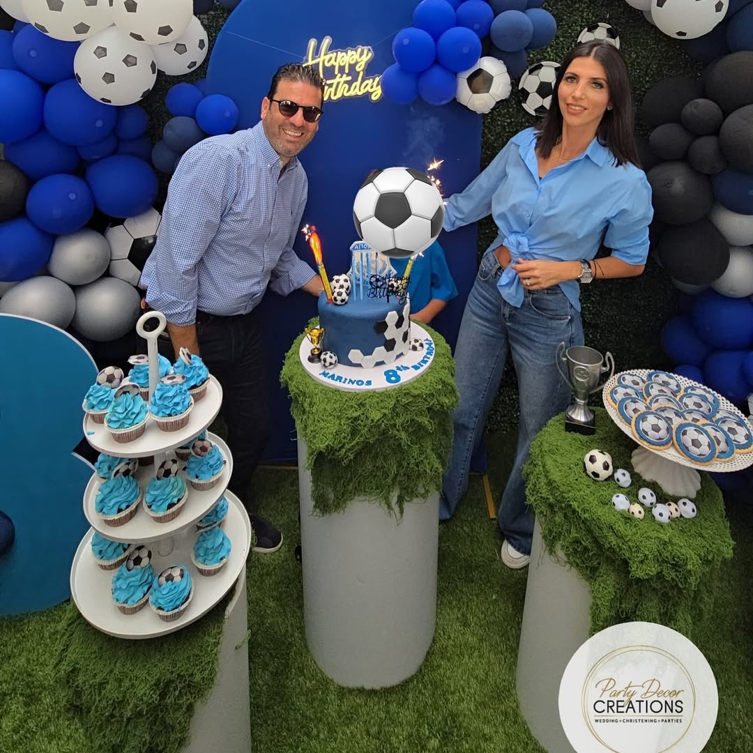 Γιορτινή διάθεση και άφθονη αγάπη πλημμύρισαν το σπίτι του Ευθύμιου Δίπλαρου και της Αργυρώς Ροτσίδου, οι οποίοι γιόρτασαν τα 8α γενέθλια του γιου τους, Μαρίνου, με ένα υπέροχο θεματικό πάρτι αφιερωμένο στο αγαπημένο του άθλημα, το ποδόσφαιρο.