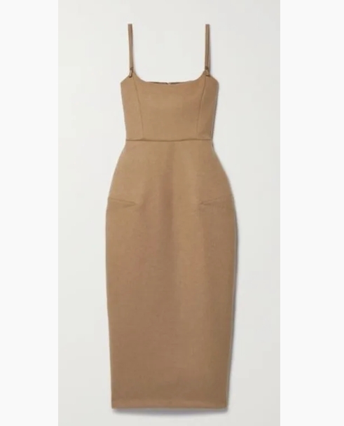 Σε ένα από τα πιο κομψά στιγμιότυπα, την είδαμε να ποζάρει μπροστά στον καθρέφτη του εστιατορίου μαζί με τον σύντροφό της, επιλέγοντας ένα midi φόρεμα Max Mara Bea από τρίχα καμήλας, ένα κομμάτι που ενσαρκώνει τη φιλοσοφία του «less is more». Το υλικό από τρίχα καμήλας προσφέρει μια μοναδική αίσθηση απαλότητας, ενώ η λιτή σιλουέτα του φόρεματος αποπνέει διαχρονική κομψότητα και understated glamour.