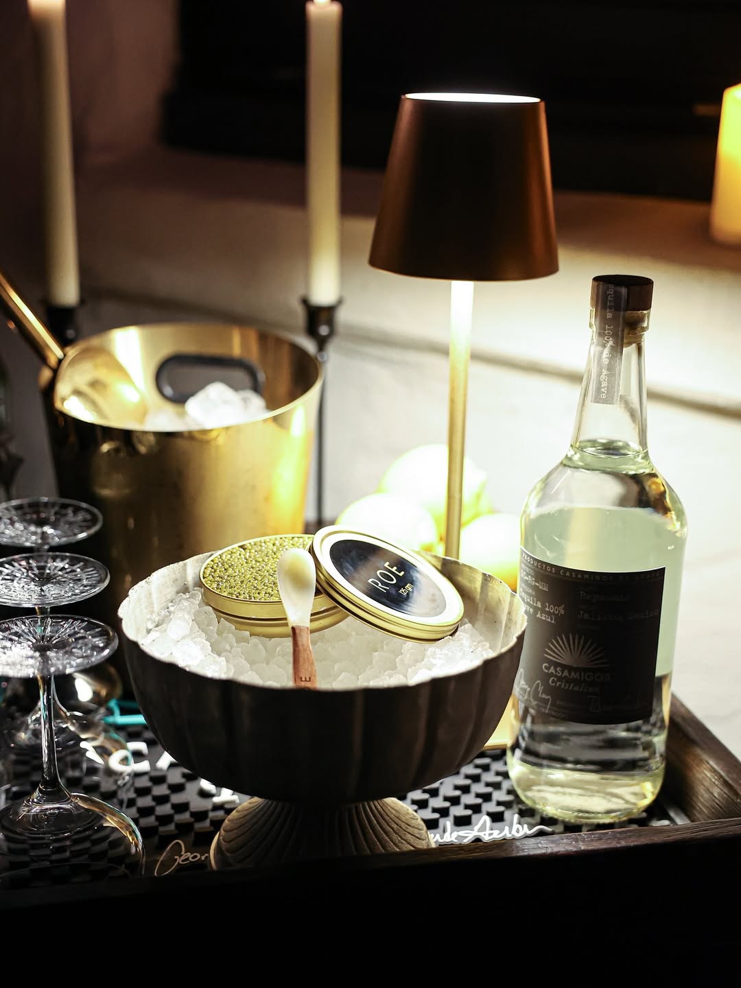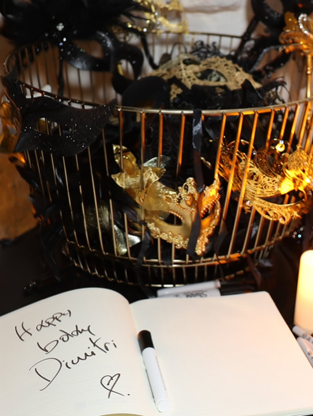 Η βραδιά περιλάμβανε live jazz μπάντα μέσα στο σαλόνι, εκατοντάδες κεριά για vintage ρομαντικό φωτισμό, martinis «αναβαθμισμένα» με λεπτομέρειες caviar, ένα επιβλητικό vintage αυτοκίνητο ως μέρος της διακόσμησης και φυσικά, ένα confetti cake που έγινε θέμα από μόνο του στο Instagram