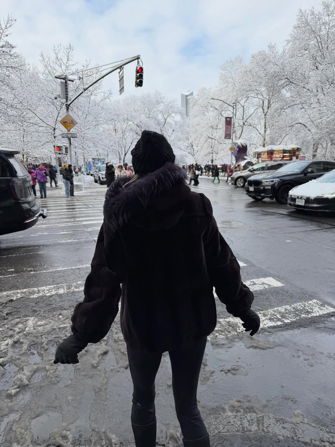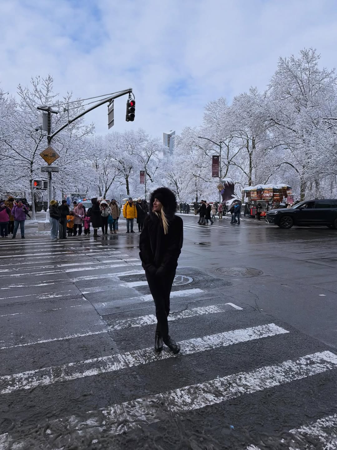 Παράλληλα, πόζαρε μπροστά στους χαρακτηριστικούς ουρανοξύστες της Νέας Υόρκης, αλλά και στους χιονισμένους δρόμους, μεταφέροντας το χειμερινό κλίμα και τη μοναδική ατμόσφαιρα της μεγαλούπολης.