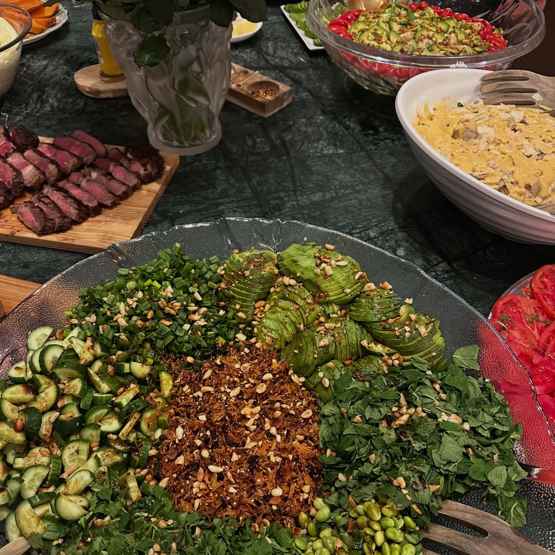 Φυσικά, δεν έλειψαν και οι γαστρονομικές απολαύσεις. Η ίδια μοιράστηκε φωτογραφίες από πιάτα του μενού της βραδιάς αλλά και από τα γλυκά, δίνοντας μια μικρή γεύση από το festive dinner που απόλαυσαν οι καλεσμένοι της.