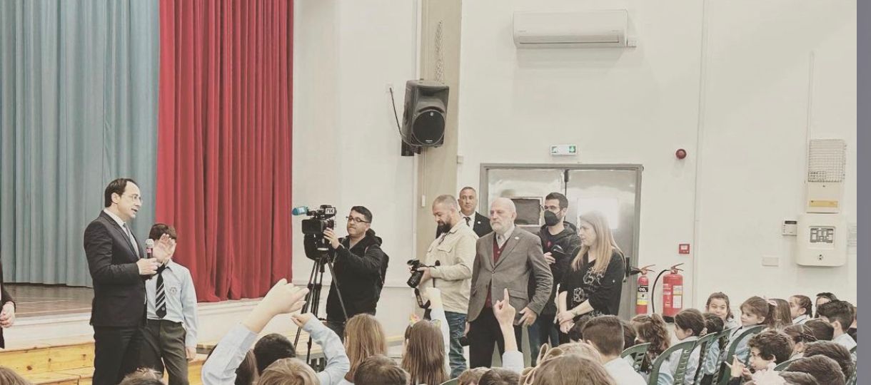 To πρωί της Πέμπτης 9 Μαρτίου ο Πρόεδρος της Δημοκρατίας, Νίκος Χριστοδουλίδης, επισκέφτηκε το Δημοτικό Σχολείο Πεύκιου Γεωργιάδη στον Στρόβολο συνοδευόμενος από την Υπουργό Παιδείας Αθηνά Μιχαηλίδου.