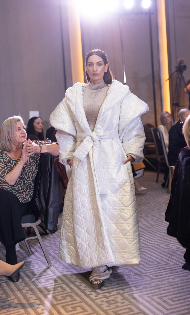 Η Βαλεντίνα Τσίγκη και η κόρη της Celine έκαναν μια εντυπωσιακή εμφάνιση στην πασαρέλα, αποθεώνοντας το άσπρο χρώμα με δημιουργίες από την Boutique Elma&Fred. Φόρεσαν ασορτί άσπρα mini φορέματα με χρυσές ζώνες αλυσίδα, δημιουργώντας ένα ενιαίο και λαμπερό σύνολο.