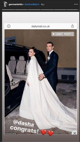 Η 38χρονη Ντάσα, όπως μπορείτε να δείτε και εσείς στις εικόνες, ήταν σαν πριγκίπισσα του χιονιού. Το νυφικό της, δημιουργία του brand Valentino, είχε μακριά κάπα, ανάγλυφα σχέδια στο μπροστινό μέρος και πέρλες στα μανίκια. Ενυπωσιακός ήταν και ο Σταύρος, ο οποίος επέλεξε ένα απλό μπλε κουστούμι.