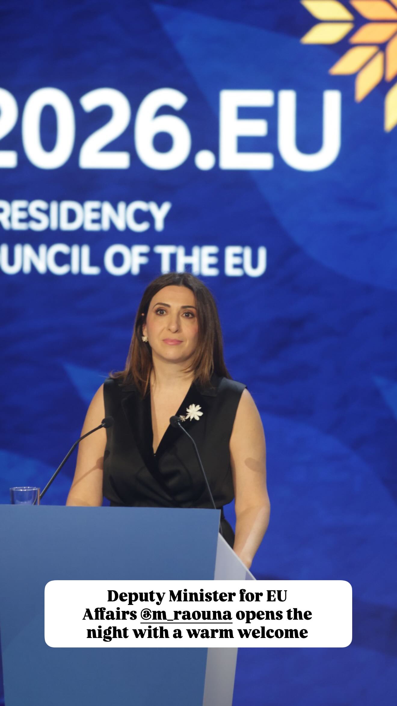 Η Μαριλένα Ραουνά περιέγραψε την Προεδρία ως ανάληψη ευθύνης με υπερηφάνεια, τονίζοντας τον ρόλο της Κύπρου ως γέφυρας μεταξύ Ευρώπης και ευρύτερης περιοχής της Μέσης Ανατολής και του Κόλπου. Υπογράμμισε ότι η έναρξη μέσω πολιτισμού ήταν συνειδητή επιλογή, αφού ο πολιτισμός λειτουργεί ως κοινή γλώσσα.