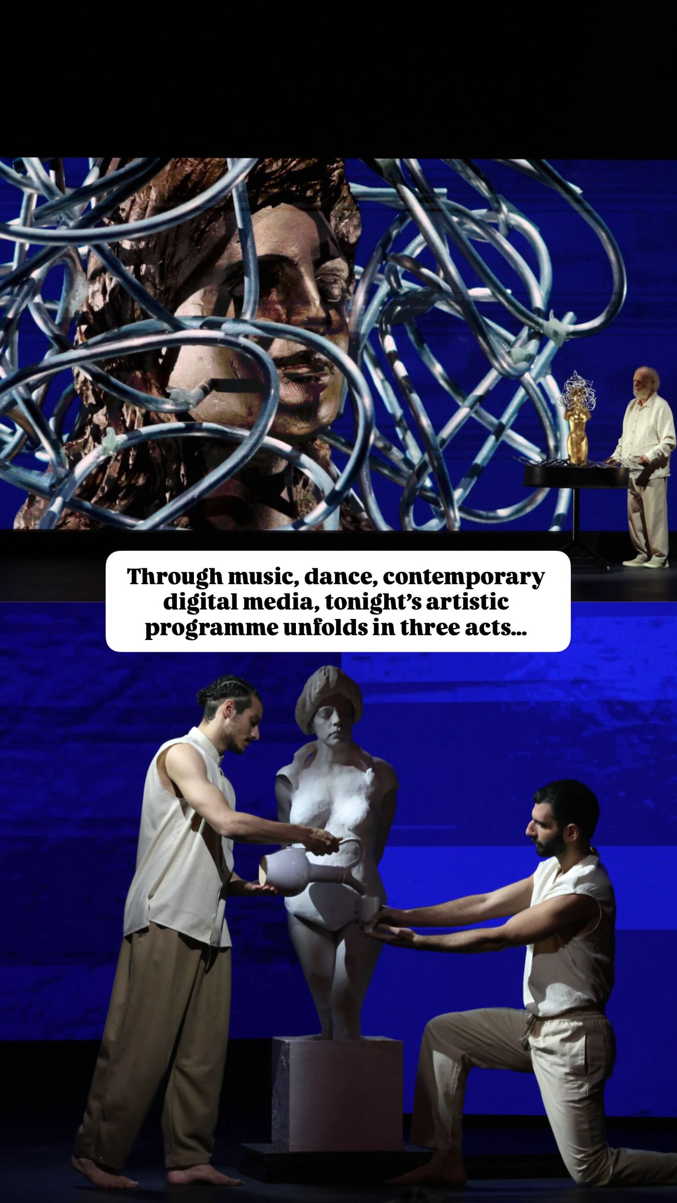 Μετά τους επίσημους χαιρετισμούς της Υφυπουργού για Ευρωπαϊκά Θέματα Μαριλένας Ραουνά, του Προέδρου Νίκου Χριστοδουλίδη, του Προέδρου της Ουκρανίας Βολοντίμιρ Ζελένσκι, του Προέδρου του Ευρωπαϊκού Συμβουλίου Αντόνιο Κόστα και της Προέδρου της Ευρωπαϊκής Επιτροπής Ούρσουλα φον ντερ Λάιεν, τον πρωταγωνιστικό ρόλο ανέλαβε η τέχνη.