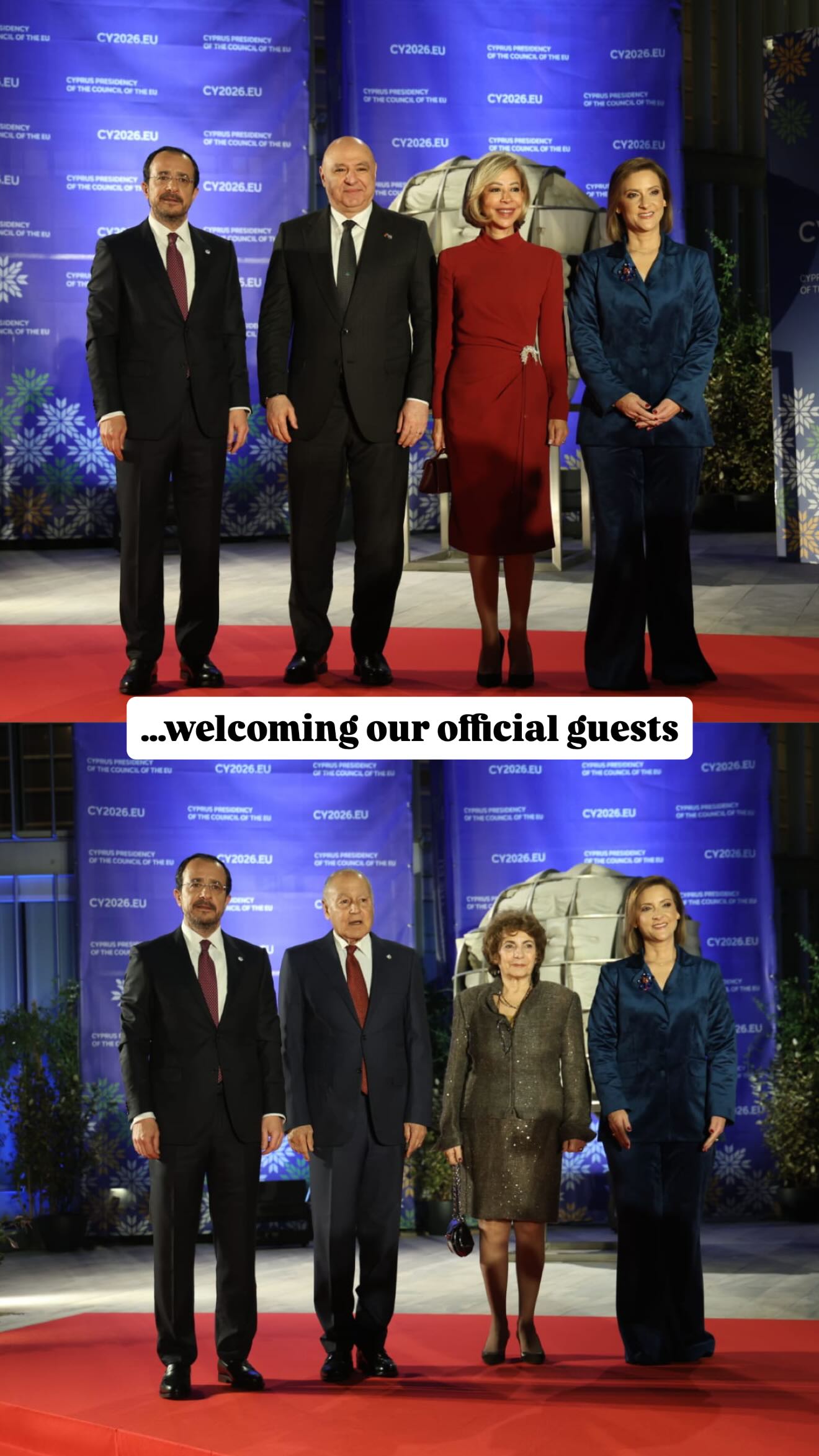 Τους αρχηγούς κρατών, κυβερνήσεων και ευρωπαϊκών θεσμών υποδέχθηκαν στον ΘΟΚ ο Πρόεδρος της Δημοκρατίας Νίκος Χριστοδουλίδης και η Πρώτη Κυρία Φιλίππα Καρσερά.