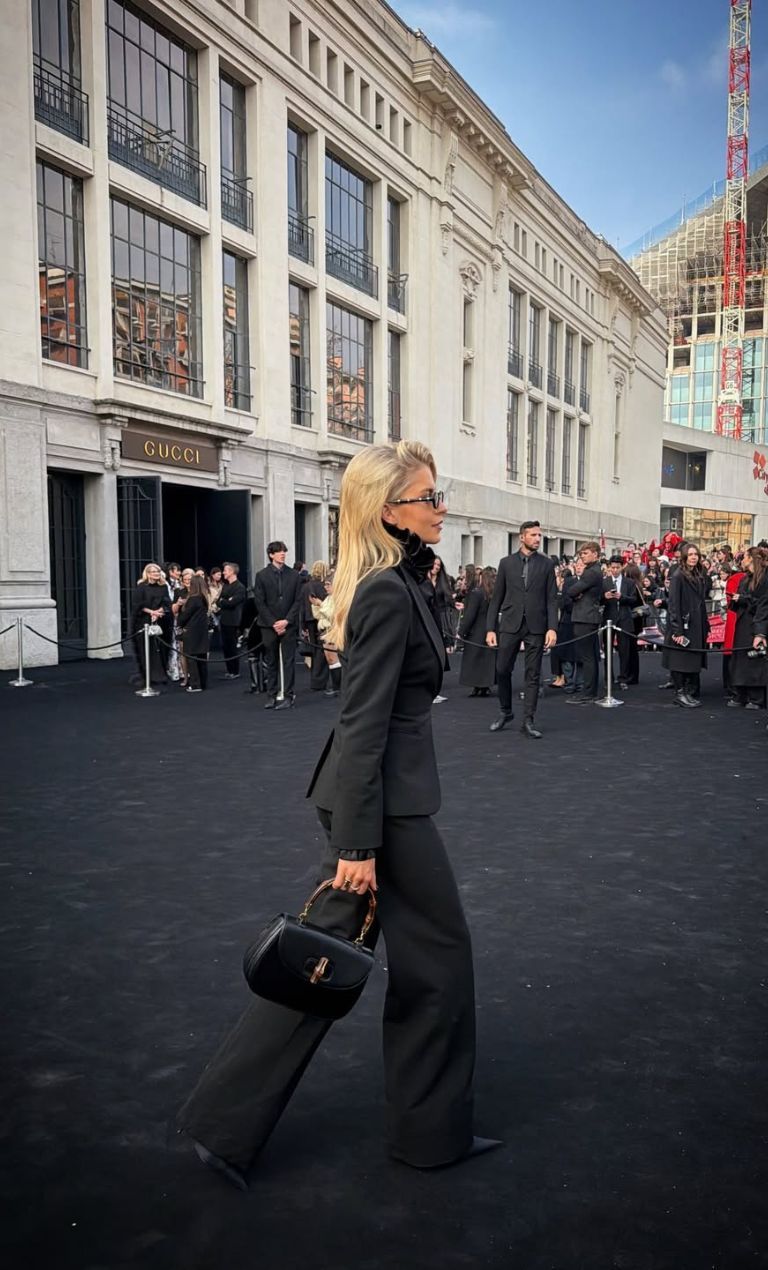 Το look της Caroline Daur αποπνέει απόλυτη αυτοπεποίθηση και σύγχρονη κομψότητα. Το αυστηρά ραμμένο μαύρο κοστούμι αγκαλιάζει τη σιλουέτα με αρχιτεκτονική ακρίβεια, ενώ το πουκάμισο με τον διακριτικό φιόγκο στον λαιμό προσθέτει μια υπαινικτική νότα θηλυκότητας μέσα στην ανδροπρεπή γραμμή. Η μακριά, ρευστή παντελόνα επιμηκύνει το σώμα, ισορροπώντας ιδανικά με τις μυτερές γόβες που χαρίζουν δυναμισμό σε κάθε βήμα. Τα σκούρα γυαλιά και η structured μικρή τσάντα λειτουργούν σαν statement λεπτομέρειες, ολοκληρώνοντας ένα σύνολο που κινείται ανάμεσα σε power dressing και διαχρονική πολυτέλεια. Ένα σύγχρονο uniform για τη γυναίκα που ξέρει ακριβώς ποια είναι.
