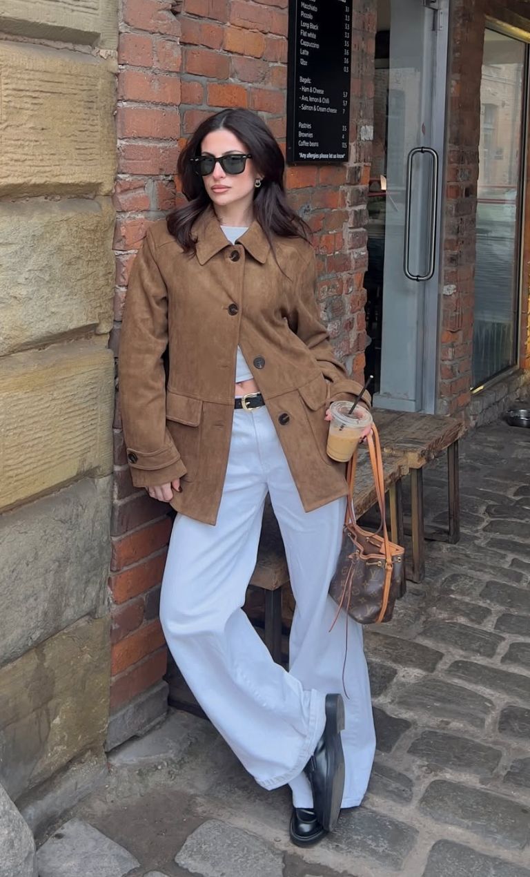 Το απόλυτο inspo της ημέρας αποτελεί μια από τις πιο πρόσφατες αναρτήσεις της Αντριανής Μουγή, η οποία μας δείχνει με τον δικό της μοναδικό τρόπο ότι το στυλ είναι στάση ζωής. Ένα ανεπιτήδευτα κομψό look που ισορροπεί τέλεια ανάμεσα στο casual και το sophisticated. Το καφέ suede σακάκι προσθέτει ζεστασιά και υφή, ενώ το λευκό cropped top και το ψηλόμεσο λευκό παντελόνι φωτίζουν το σύνολο και χαρίζουν καθαρές γραμμές. Τα μαύρα loafers δίνουν διαχρονικό χαρακτήρα, ενώ τα γυαλιά ηλίου και η καφέ τσάντα ολοκληρώνουν το outfit με urban elegance. Ο καφές στο χέρι και το relaxed styling αποπνέουν effortless cool και σύγχρονο city vibe.