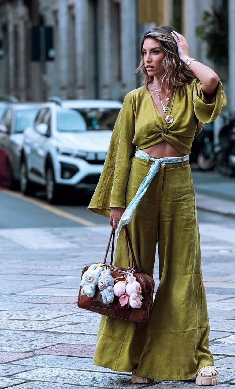 Με στιλ που δεν περνά ποτέ απαρατήρητο, η Αθηνά Οικονομάκου περπάτησε τα στενά σοκάκια του Μιλάνο με ένα look που φωνάζει «καλοκαίρι» και «άνεση». Η ηθοποιός και επιχειρηματίας επέλεξε ένα αέρινο λινό co-ord set σε φιστικί απόχρωση, αναδεικνύοντας ιδανικά το μαύρισμά της και αποθεώνοντας την πιο viral τάση της σεζόν. Το outfit ήταν minimal αλλά με ανατρεπτικές λεπτομέρειες: στην τσάντα της είχε κρεμασμένα Labubu αρκουδάκια σαν μπρελόκ – ένα παιχνιδιάρικο twist που ισορροπεί τέλεια ανάμεσα στο Y2K και το cult αξεσουάρ του TikTok. Το look ολοκληρώθηκε με nude flat σανδάλια και boho κοσμήματα, επιβεβαιώνοντας πως η Αθηνά ξέρει να συνδυάζει ανεπιτήδευτα την άνεση με τη στιλιστική άποψη.