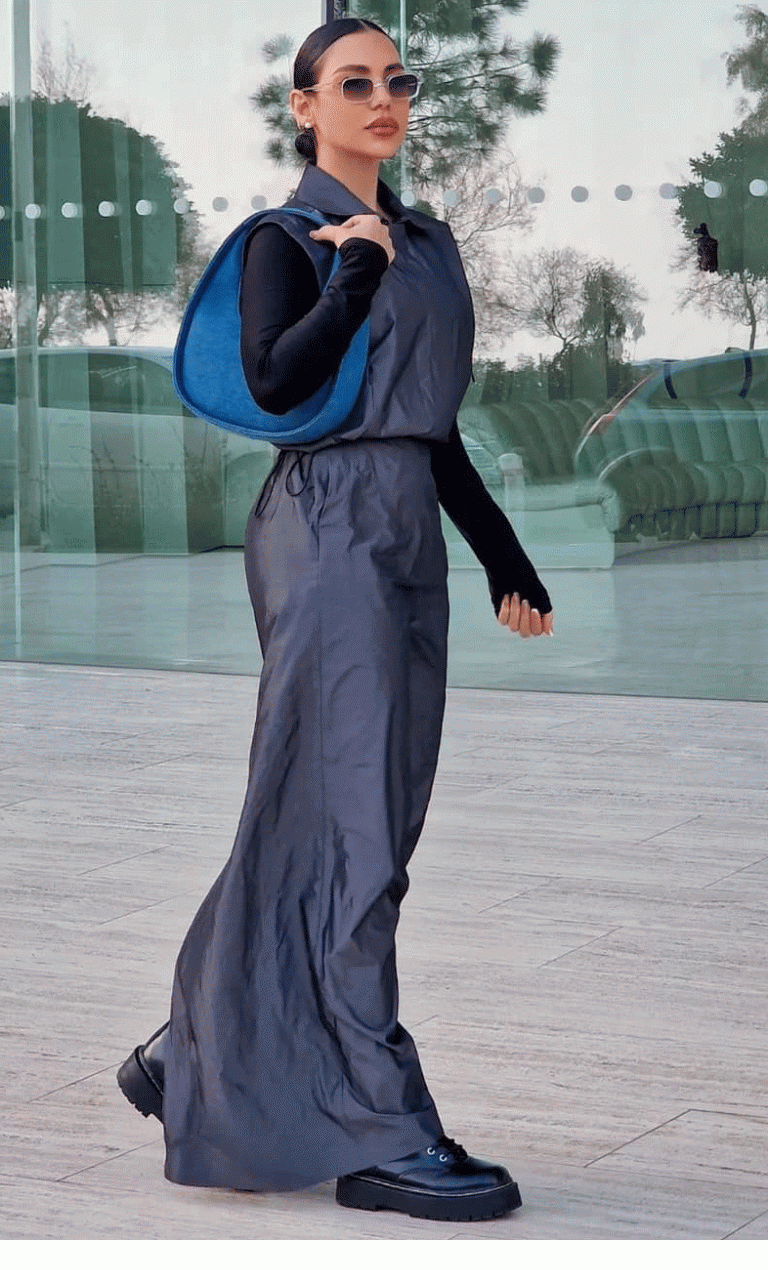Μια όχι και τόσο διαχρονική τάση, ανέδειξε η Στέφανη Σόλωνος μέσα από πρόσφατη ανάρτηση της στο Instagram όπου φόρεσε ένα πολύ εντυπωσιακό φόρεμα σε μολυβί απόχρωση, το οποίο ήταν φτιαγμένο από parachute ύφασμα. Η γυναίκα της μόδας όπου μετρά περισσότερους από 49 χιλιάδες followers, το συνδύασε με μαύρα άρβυλα και μια structured τσάντα σε μπλε χρώμα. Oλοκλήρωσε το look της με διαφανή γυαλιά ηλίου και είχε τα μαλλιά της πιασμένα σε slick bun.