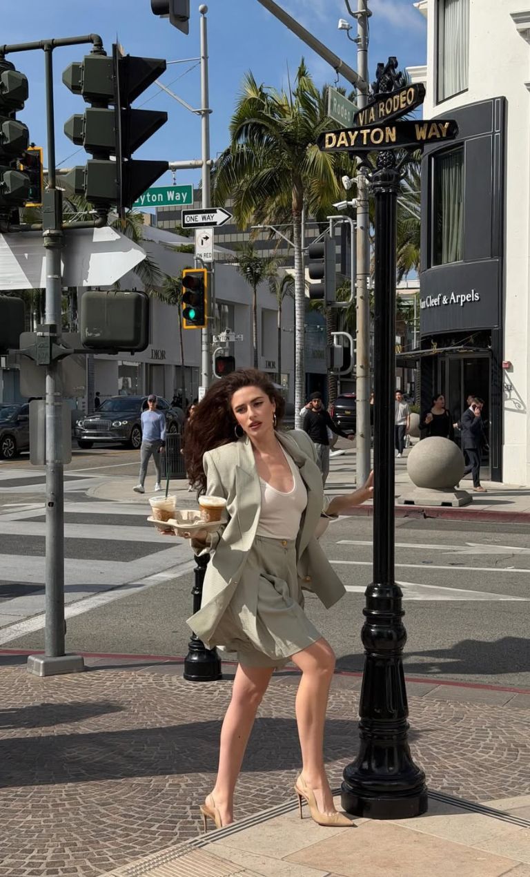 Η Léanne Ansar αποπνέει μια αβίαστη δυναμικότητα μέσα από το σύνολο που επέλεξε, σαν να έχει ξεπηδήσει από ένα fashion editorial που ισορροπεί ανάμεσα στην αστική κομψότητα και τον αυθορμητισμό της πόλης. Το tailored κοστούμι σε απαλό ουδέτερο τόνο, με σακάκι και βερμούδα, αναδεικνύει μια σύγχρονη εκδοχή του power dressing, όπου η αυστηρή γραμμή συναντά τη θηλυκότητα και την άνεση. Τα nude heels επιμηκύνουν τη σιλουέτα, ενώ τα φυσικά, ανεπιτήδευτα μαλλιά προσθέτουν κίνηση και ένταση, δημιουργώντας μια ισορροπία ανάμεσα στο polished και το effortless.