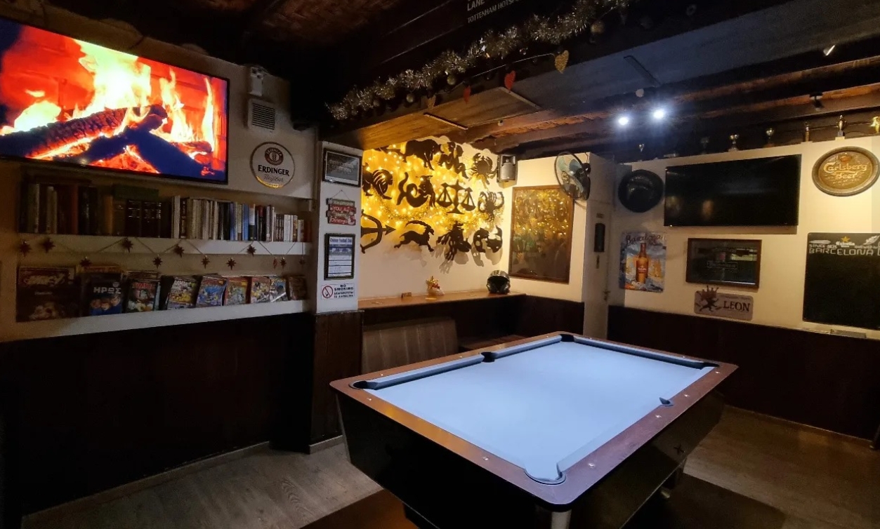 Με έντονη επιρροή από αγγλικό pub έχει δύο τζάκια, μπιλιάρδο, τεράστια αυλή που αποτελεί σημείο αναφοράς το καλοκαίρι και μεγάλη ποικιλία σε μπύρες, ουίσκι, gin και cocktails. Η μουσική; Πάντα ξένη, ροκ, blues και soul.