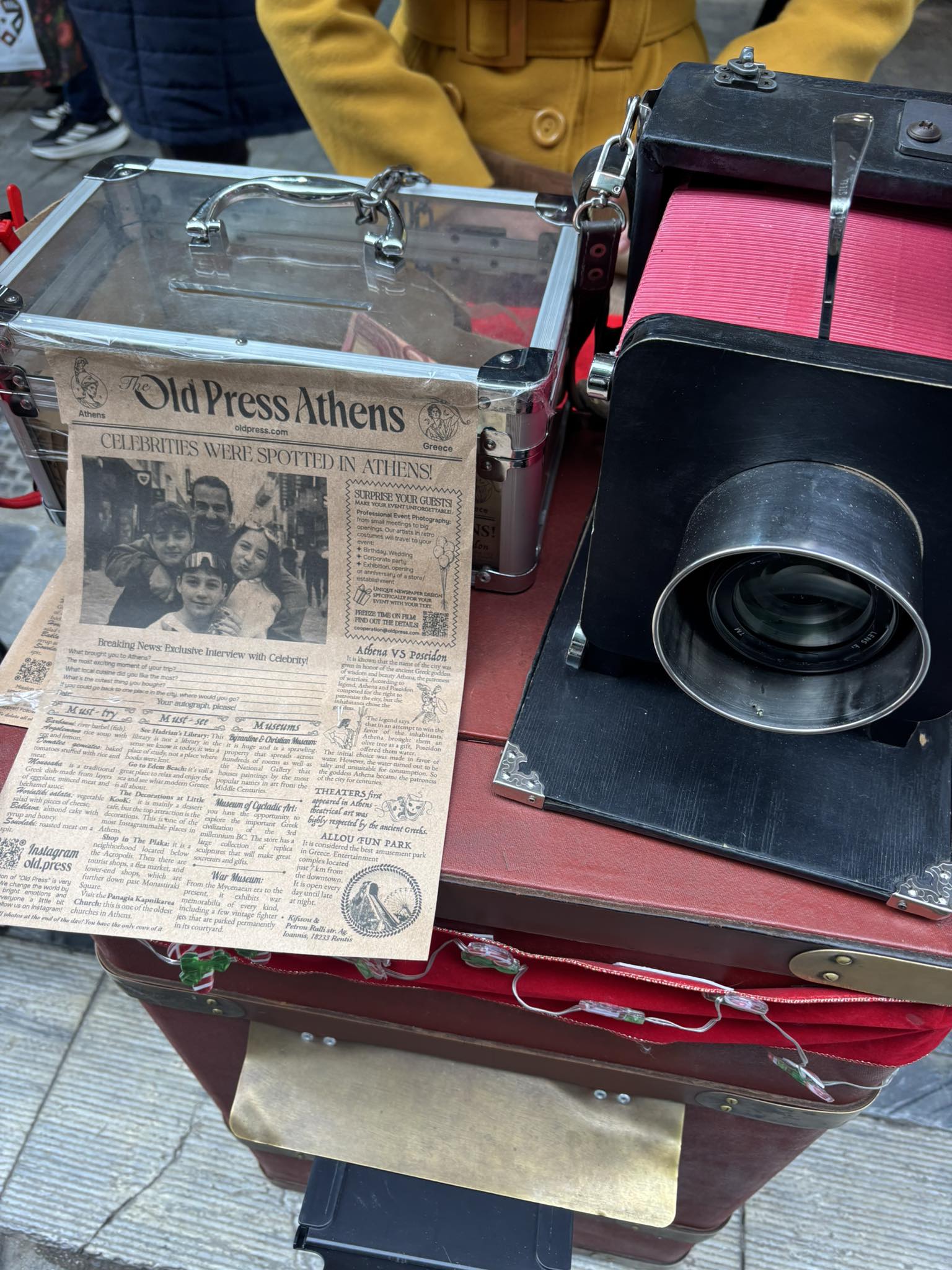 Συνεχίζοντας το περπάτημά μου και φυσικά κάνοντας και λίγα ψώνια, συναντώ μπροστά μου μια κοπέλα που με ρωτά αν θα ήθελα να με βγάλει μια φωτογραφία με μια παλιά αναλογική κάμερα. Και μετά να τη τυπώσει εκείνη τη στιγμή πάνω σε μια παλιά, καφέ εφημερίδα.