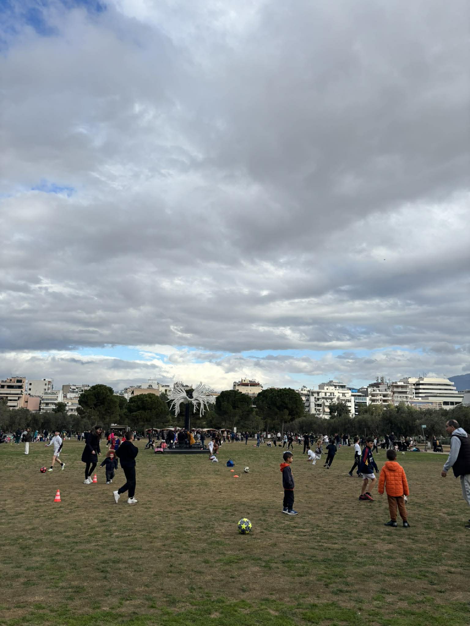 Στη βόλτα μας στο Ίδρυμα Σταύρος Νιάρχος είδα κάτι πολύ όμορφο. Μια εικόνα που ξέρω πως θα μου μείνει στο μυαλό για καιρό. Γονείς και παιδιά παντού. Πολλές μπάλες ποδοσφαίρου σκορπισμένες στο γρασίδι. Όλοι καθισμένοι, παρά το κρύο, να απολαμβάνουν την ημέρα με έναν καφέ στο χέρι. Γονείς να τρέχουν πίσω από τα παιδιά τους, να γελούν, να παίζουν μαζί τους και να χάνονται μέσα στη στιγμή. Και τα παιδιά, να απολαμβάνουν την απλότητα του χώρου, να τρέχουν, να γελούν, να πέφτουν στο γρασίδι και να σηκώνονται ξανά, σαν να μην υπάρχει τίποτα άλλο στον κόσμο πέρα από αυτό το παιχνίδι.