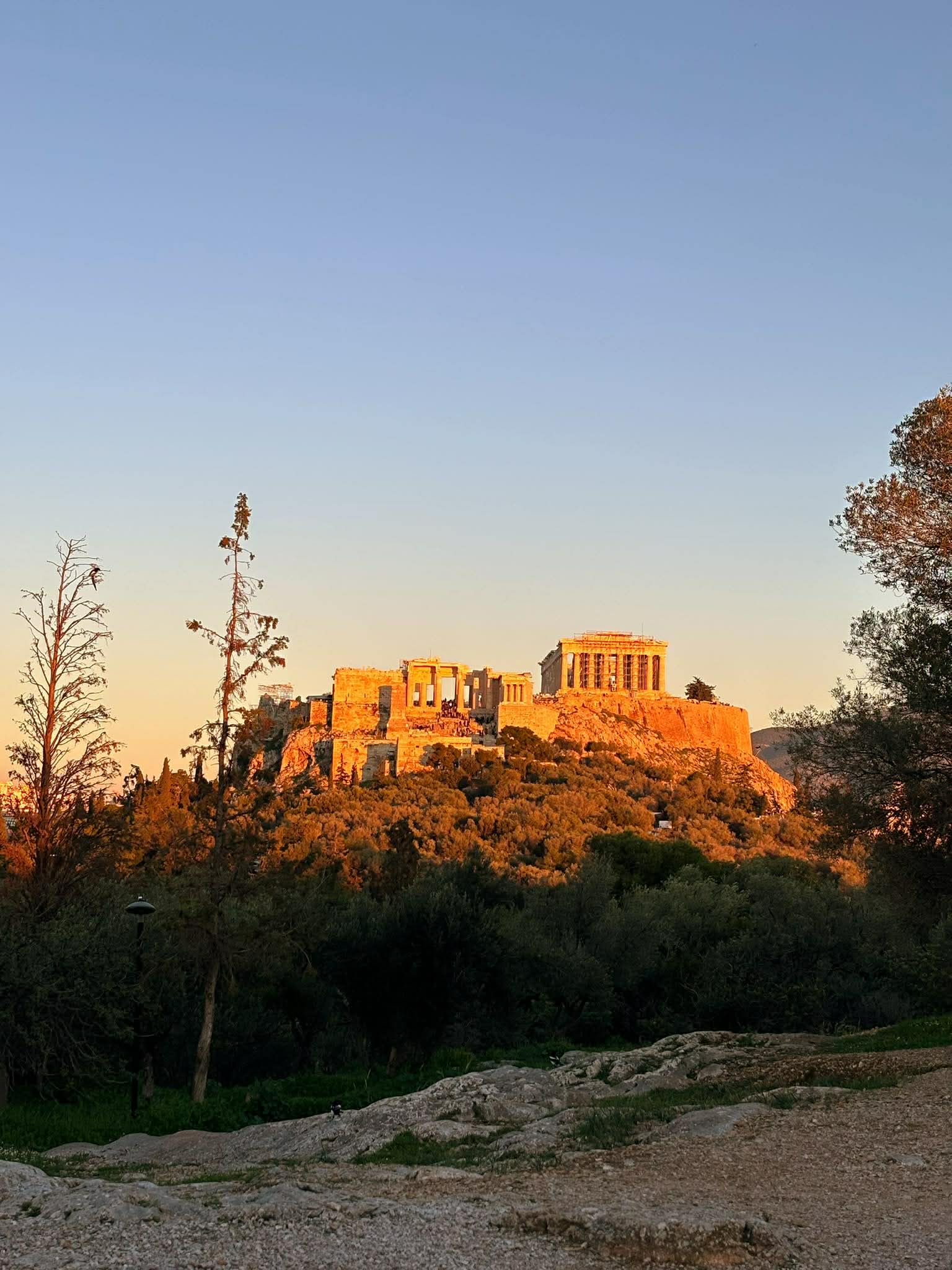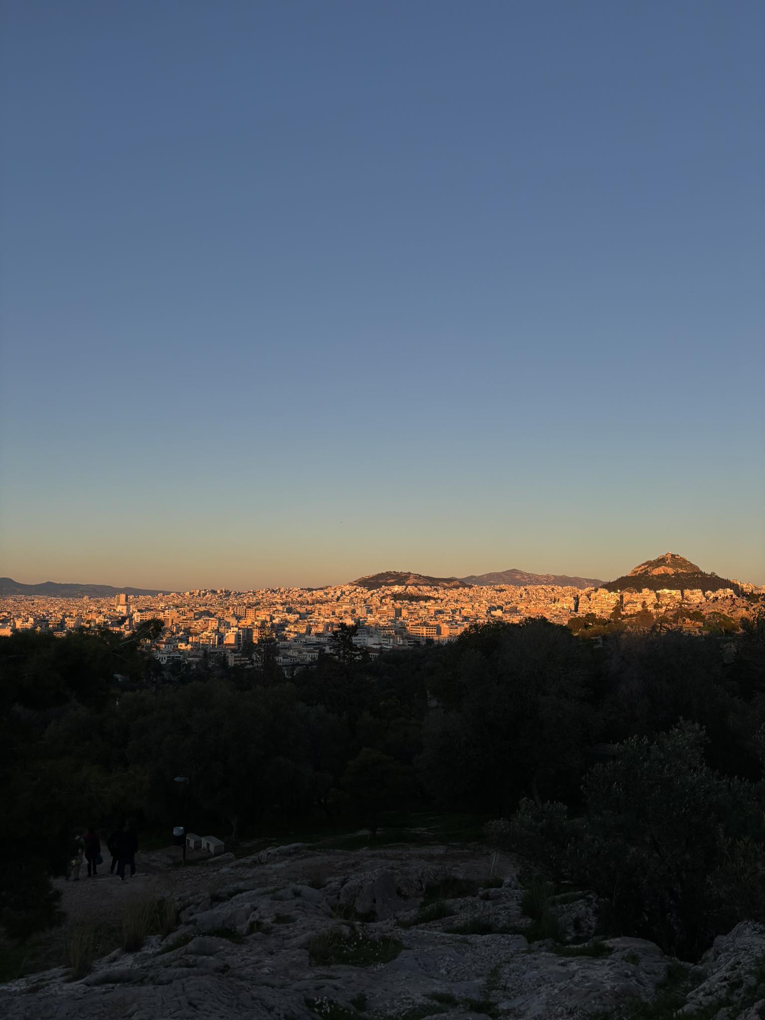 Και κάπως έτσι λίγο πιο μετά, το όμορφο απόγευμα, ο δρόμος μας έβγαλε στου Φιλοπάππου. Λίγο πριν το ηλιοβασίλεμα, για να το δούμε και να το ζήσουμε. Είδαμε κόσμο να περπατάει, να βγαίνει με τα κατοικίδιά του, να κάθεται κάτω, να χαλαρώνει. Να συζητάει. Άραγε για τι; Για τη ζωή, τις σχέσεις, τους χαμένους έρωτες, τις δουλειές τους, όλα όσα κουβαλάει ο καθένας μέσα του με έναν καφέ ή μια μπύρα στο χέρι. Και μετά ήρθε το ηλιοβασίλεμα και μαζί του απλώθηκε μια απίστευτη ησυχία. Σαν να συμφώνησαν όλοι, σιωπηλά, να αφήσουν για λίγο τα πάντα στην άκρη. Να αδειάσουν το μυαλό τους και να μείνουν μόνο στη στιγμή.
