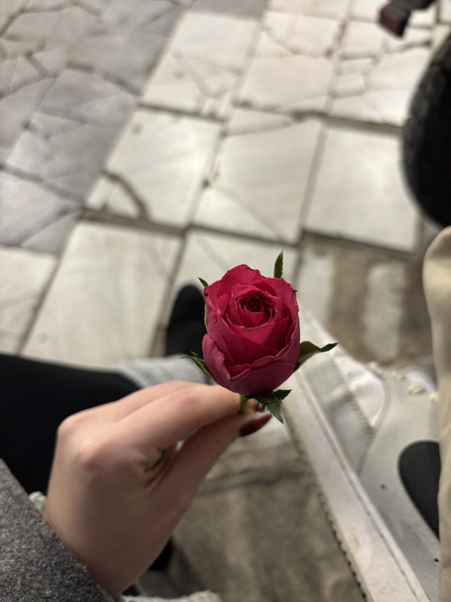 Και μετά, στην Πλάκα, εκείνη η γυναίκα που περιπλανιόταν πουλώντας τριαντάφυλλα. Ήταν μια εικόνα παράξενη και λίγο στενάχωρη γιατί σχεδόν κανείς δεν αγόραζε. Όταν ήρθε κοντά μας, της είπαμε πως δεν έχουμε μετρητά. Εκείνη όμως επέμεινε να μας δώσει έστω ένα τριαντάφυλλο. «Επειδή είστε όμορφες», μας είπε. Ακόμη κι αν δεν της το πληρώναμε, και μπορούσες να δεις την καλοσύνη στα μάτια της.