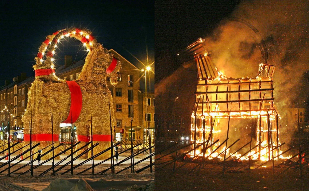 Πόλεις σε όλη τη Σουηδία κατασκευάζουν κάθε χρόνο «Χριστουγεννιάτικες Κατσίκες» στην αρχή της περιόδου του Advent, με τη διάσημη κατσίκα της «Γκέβλε» – μια τεράστια κατασκευή από άχυρο – να φτάνει συχνά τα 12 μέτρα.